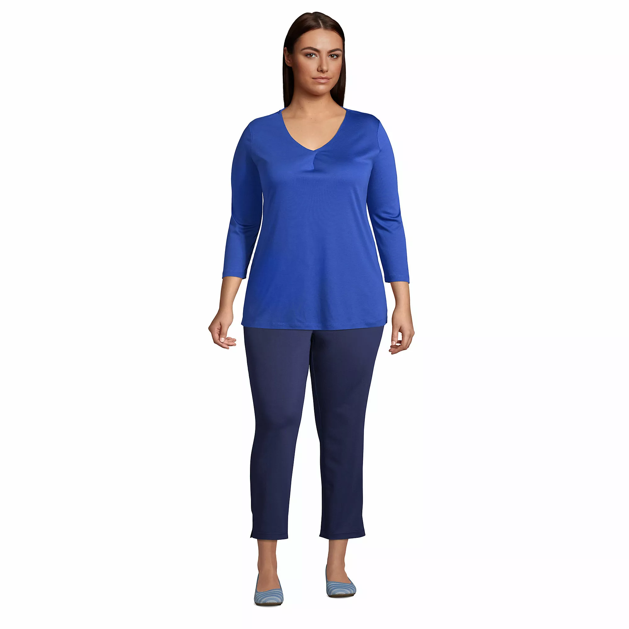 With its graceful V-neck, front pleat and relaxed silhouette, this top combines effortless style with the versatility of a tunic length. The fabric is a pamperingly-soft blend featuring premium, US-grown Supima® cotton.