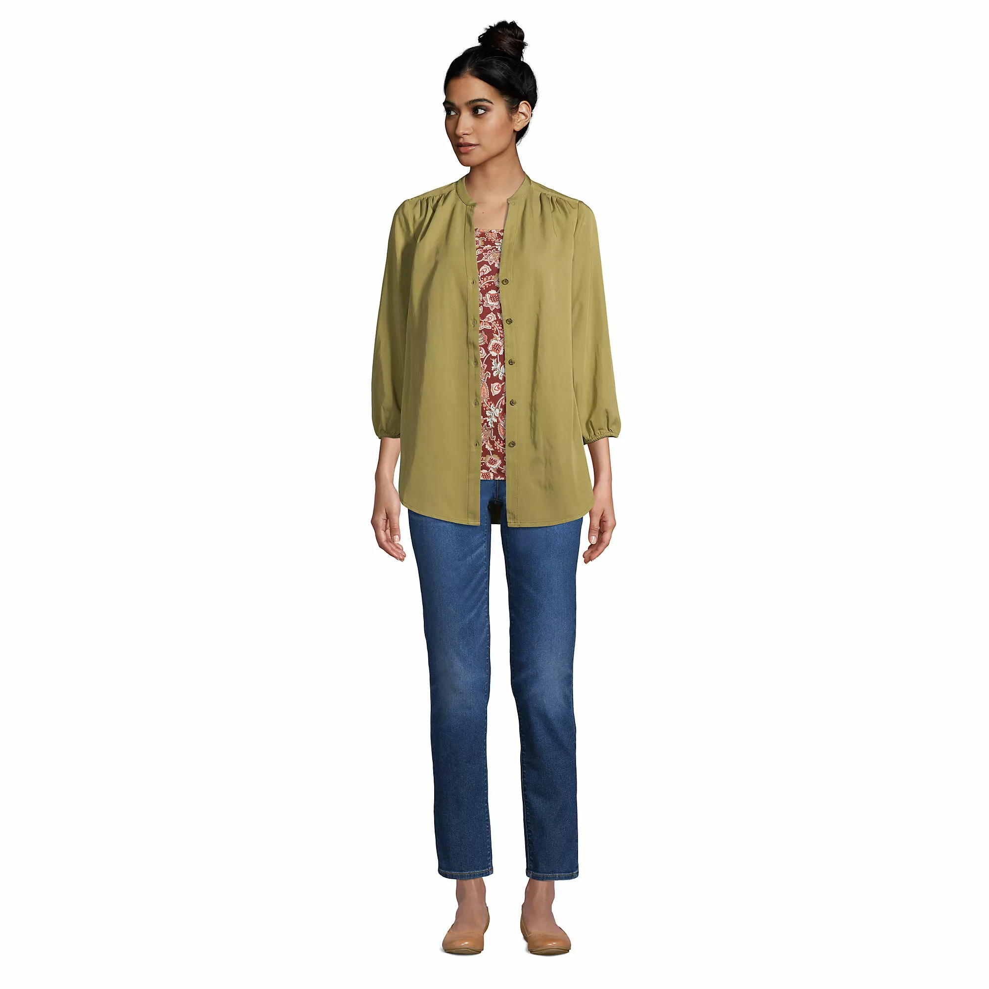 Our boyfriend tunic borrows from his button-up — with an easy fit, banded collar and button front — and tosses in a few twists of its own. Like softer, airier fabric (lightly brushed for comfort). Playful shirring. Three-quarter sleeves. Easy elastic cuffs. And, of course, that coveted tunic length. Safe to say your days of borrowing his button-up may be over.