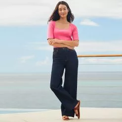 These may look just like our fan favorite high-rise, wide-leg jeans you know and LOVE, but there’s a much deeper story here. A feel-good story where we’re putting our best foot forward toward a greener earth and better future. How? Recoverâ„¢ denim. What does that mean? Well, it means that using just 20% of Recoverâ„¢ recycled cotton fiber to make just one pair of jeans will save enough water to amount to 23 showers or one year of drinking water. How does it work? Recoverâ„¢ denim uses liquid indigo vs. traditional indigo dying, which amounts to huge water savings. So, not only will you look great rocking these just-right-fit jeans, but you’ll feel even better helping the environment one pair of jeans at a time. P.S. The faux leather patch is even made out of sustainable apple skin … how cool is that?!