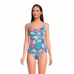 This V-neck tankini is more than just pretty, it’s reversible, giving you two color options in one. Made with LYCRA® Xtra Life™ spandex, a long-lasting spandex that resists breakdown from chlorine, sweat and sunscreen, it also has built-in UPF 50 sun protection. The shirring details hug your curves while the flattering silhouette is easy to pair with your favorite bikini bottoms for the perfect look.