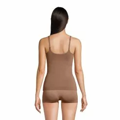 From the designers of the swimwear you love comes Lands’ End Comfy built-in bra camis created with every inch of the Lands’ End fit, comfort and quality you’ve come to expect. A part of barely-there, seamless collection, this cami has a free-floating bra with a nice, elastic under bust, soft cups and a close-to-the-body fit, great for layering. Plus, there are no seams. That means no show-though, no matter what you’re wearing. And also, no pinching, itching or rubbing. Just … bliss. Soft, stretchy and balanced. Our goal is to make women feel comfortable, beautiful and confident at any age and any fit, starting at the first layer.
