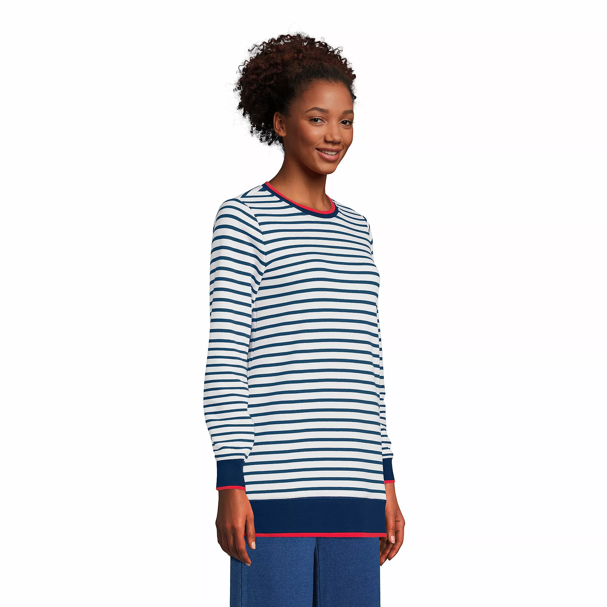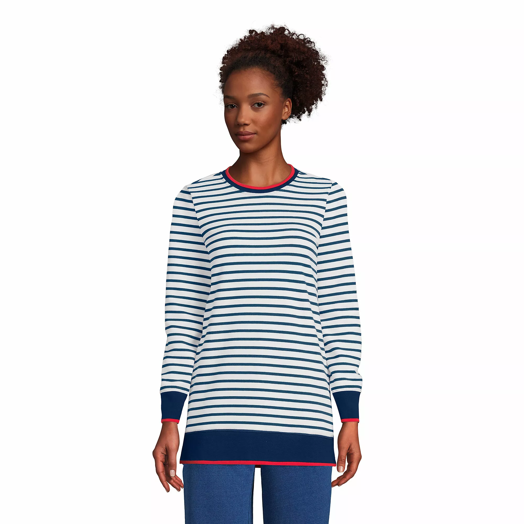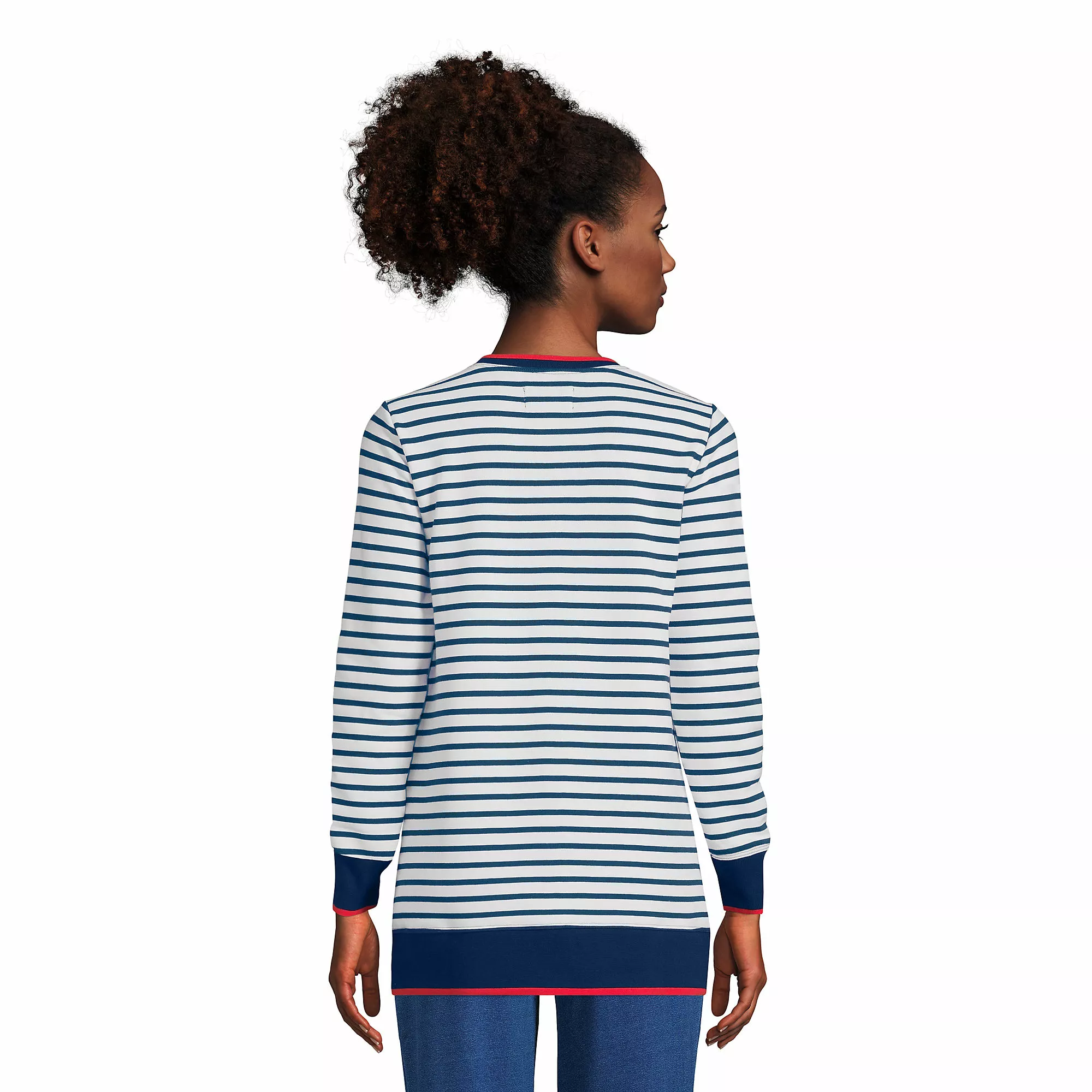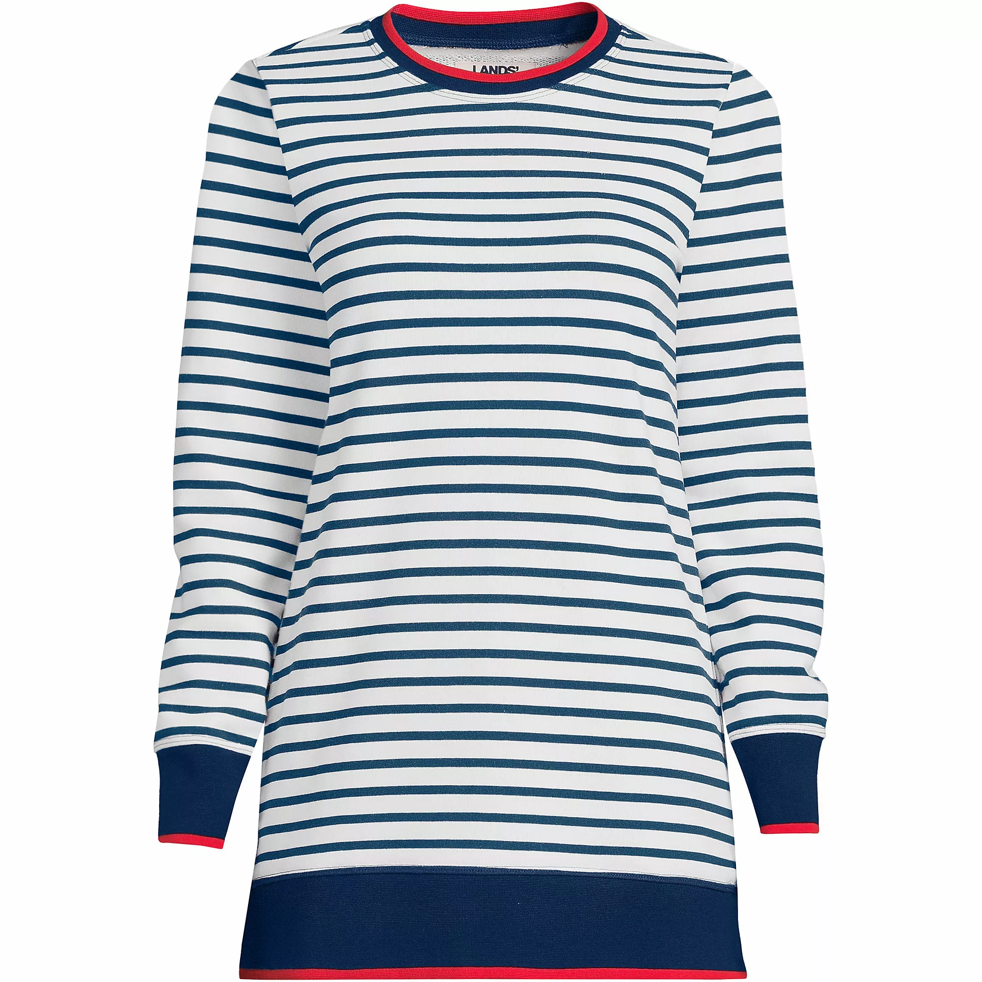 What sets this sweatshirt this apart? It starts with French terry knit that’s more refined than standard sweatshirt fleece, with a looped back that goes comfortably from season to season. No slouchy sweats look here. Just a relaxed, yet feminine tunic silhouette, ready to pair with your favorite leggings or jeans.