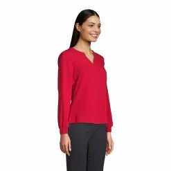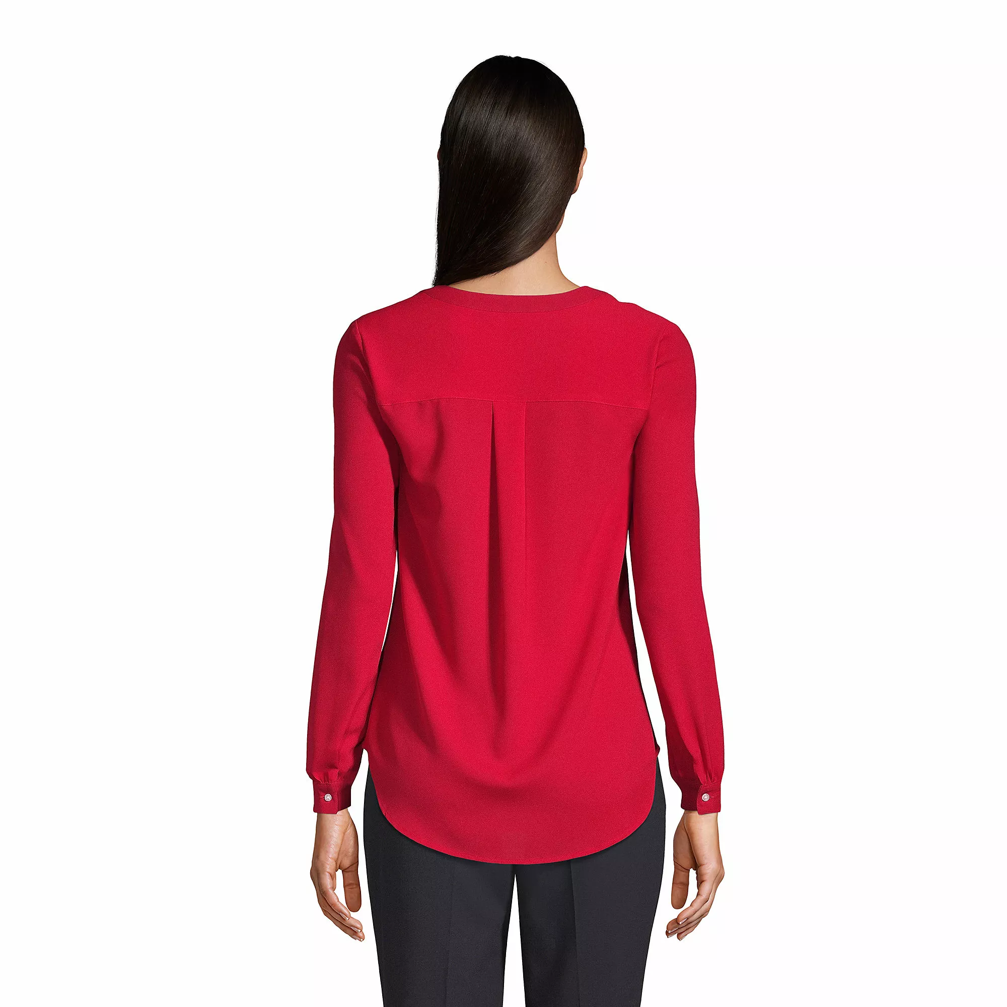 Choose this blouse in the morning and you’ll be neat and comfortable throughout the day. It’s made from a soft crepe fabric with a fluid drape that looks beautiful. It’s also easy to care for, and will hold on to its rich color.