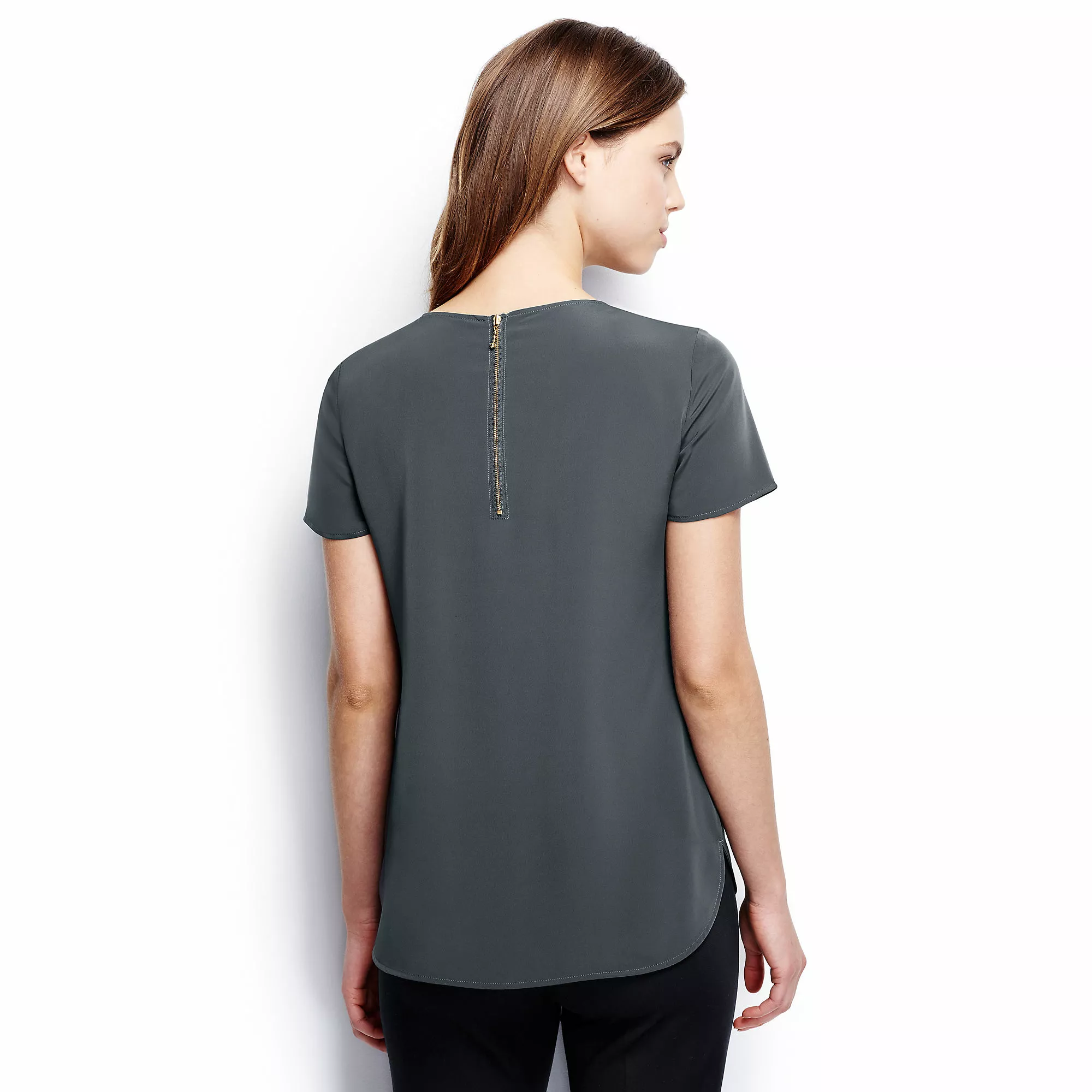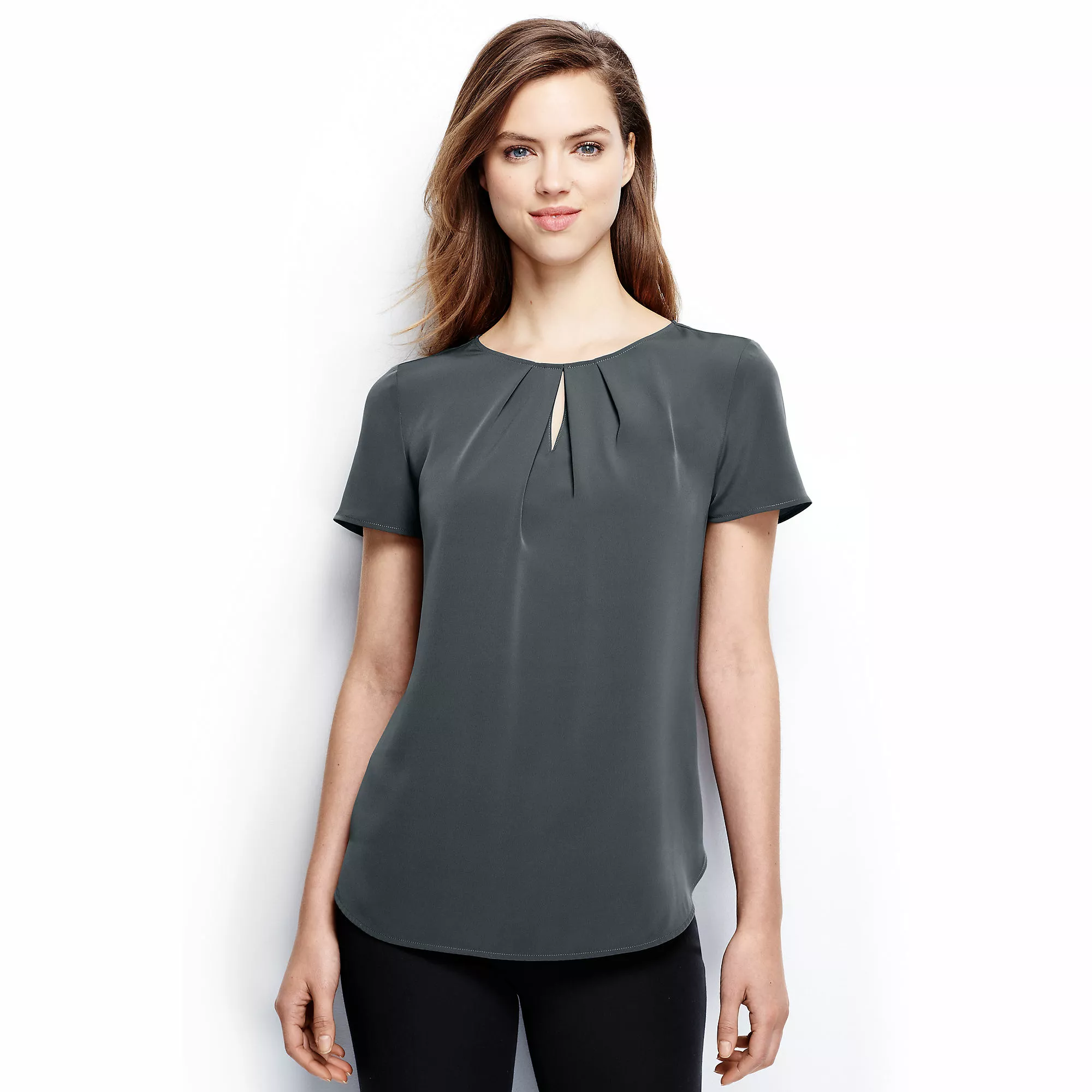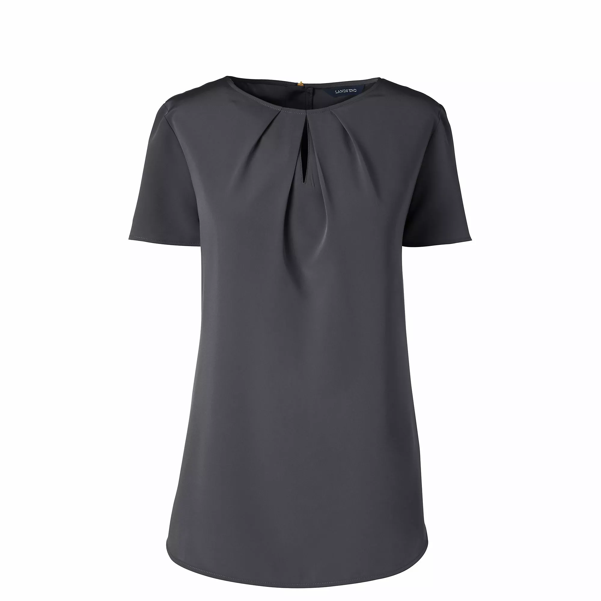 A keyhole neckline, neat pleats and smooth-draping fabric make this blouse an elegant, feminine piece.