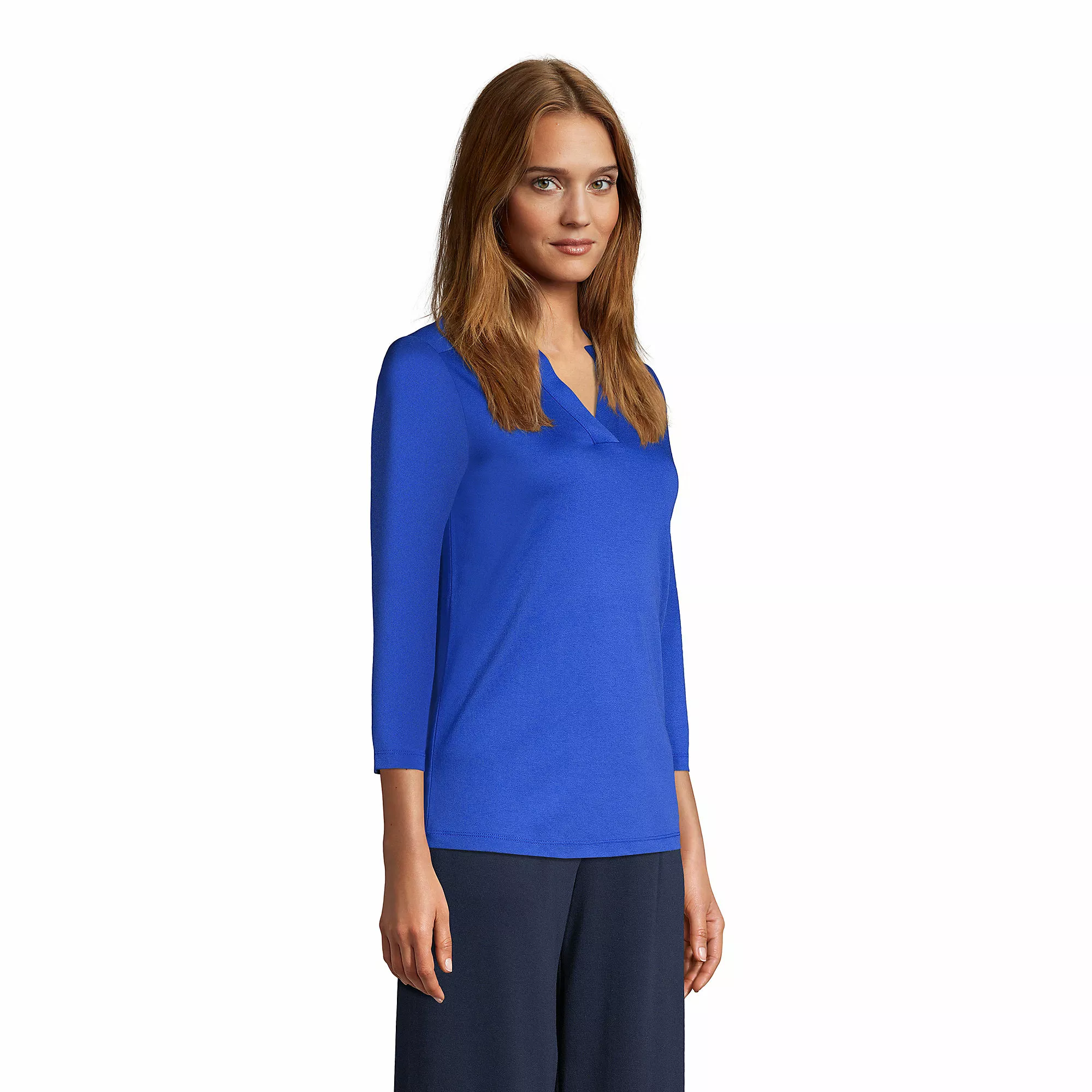 The notch neckline enhances comfortable knit top’s innate elegance. A blend of smooth rayon and Supima®, the finest cotton grown in the USA, makes this top incredibly soft and easy to care for too.
