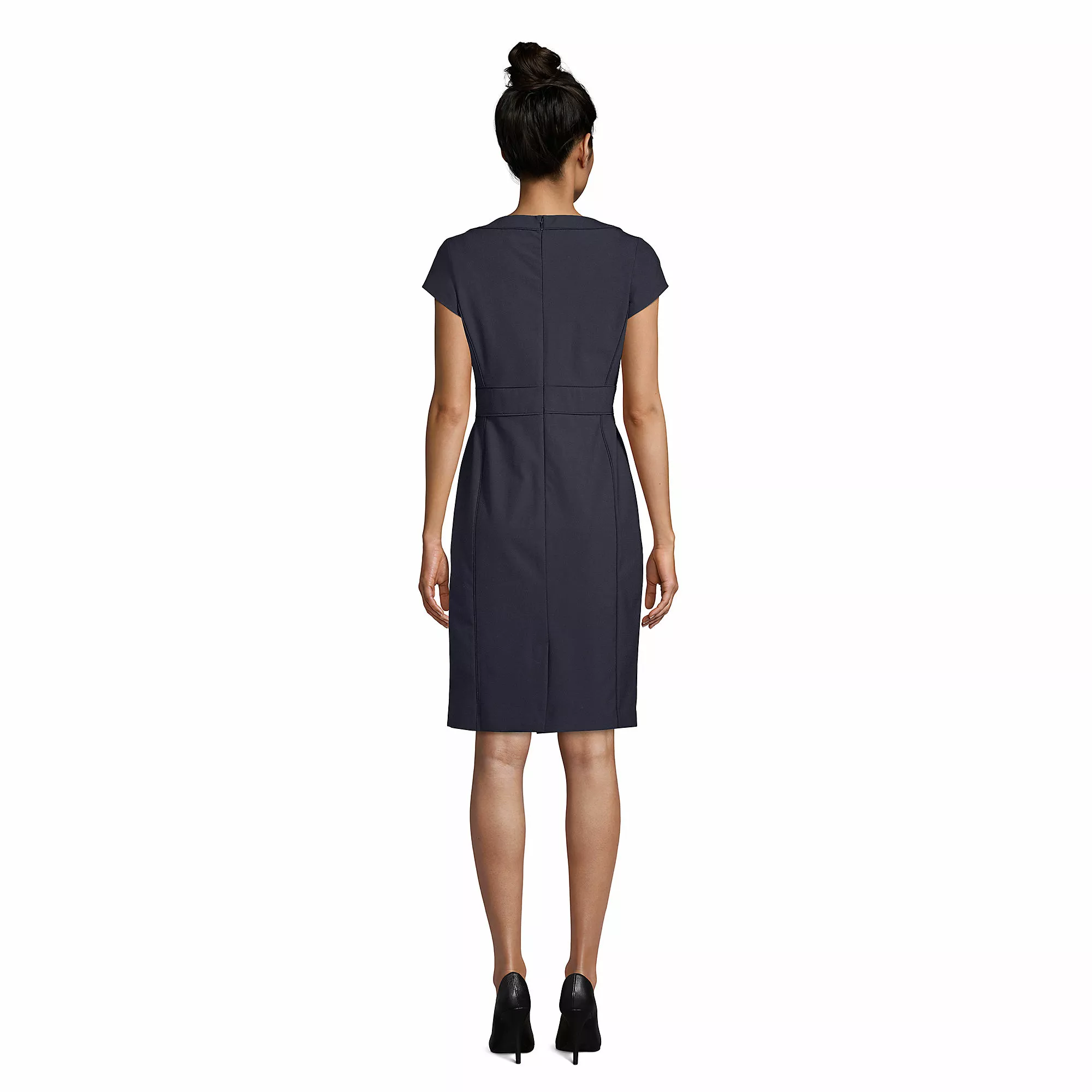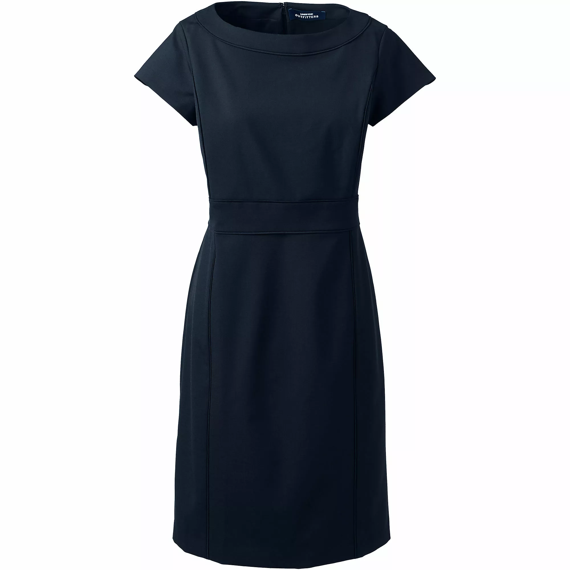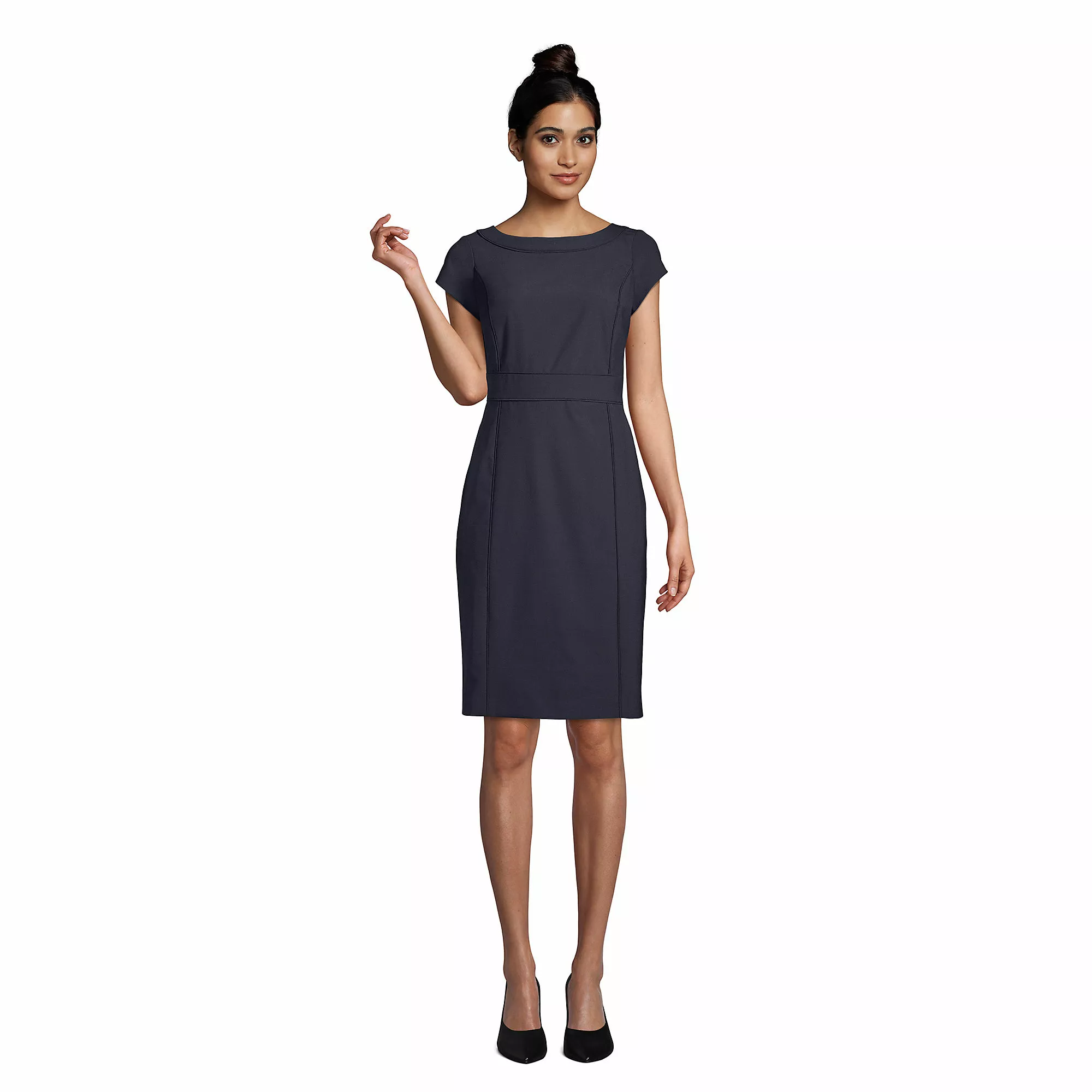 Subtle piping at the neckline, waistband and princess seams make this washable wool piped sheath dress utterly flattering. It’s also machine washable and perfect for travel.