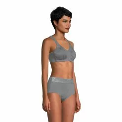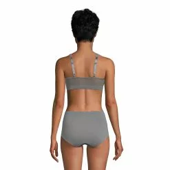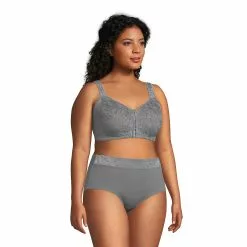 If you prefer the convenience of front-close bras, here’s one that will offer you all-day comfort. This full-coverage, wire-free bra features a subtle floral jacquard print that won’t show through your clothes. Lightly lined cups provide modesty and support.