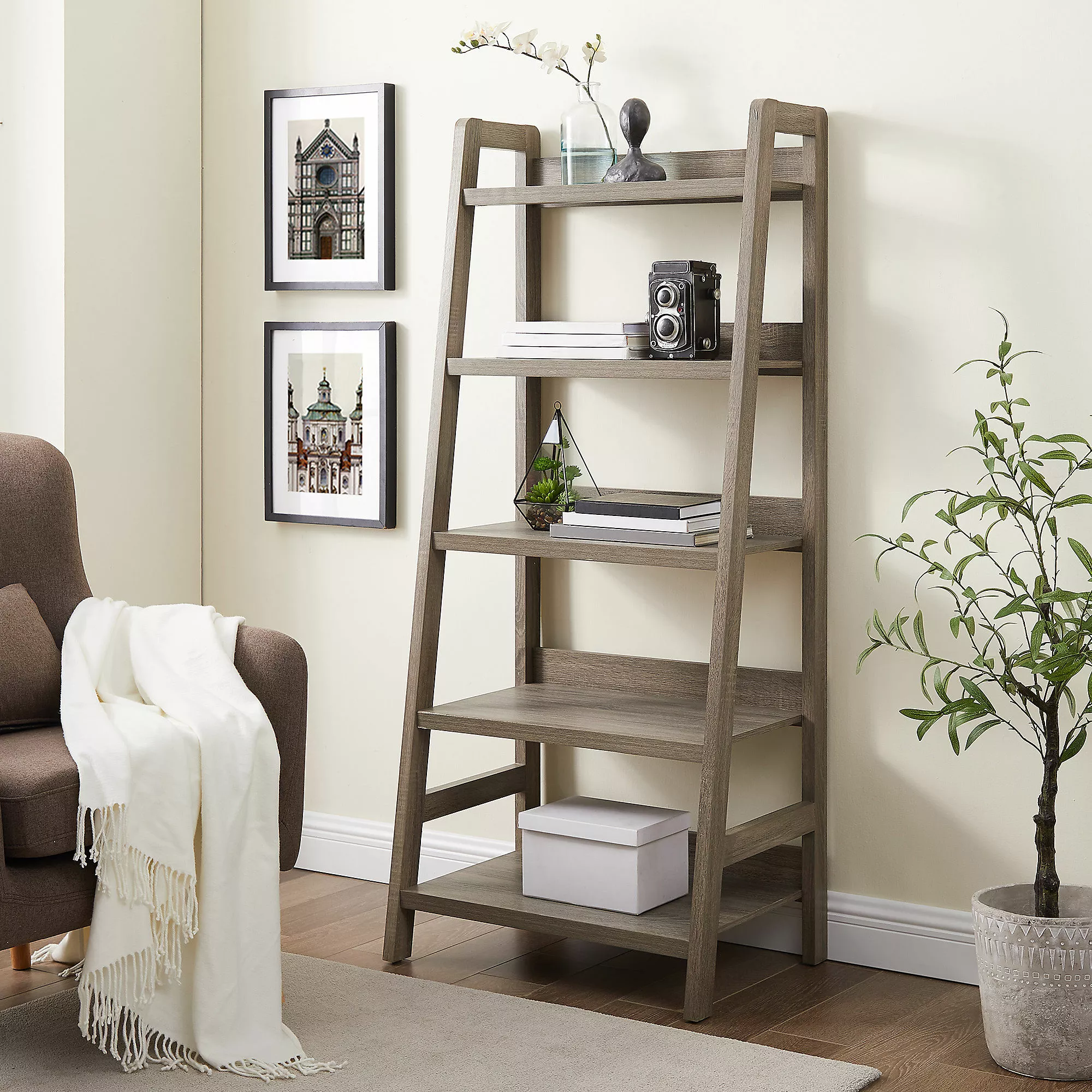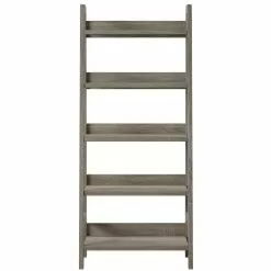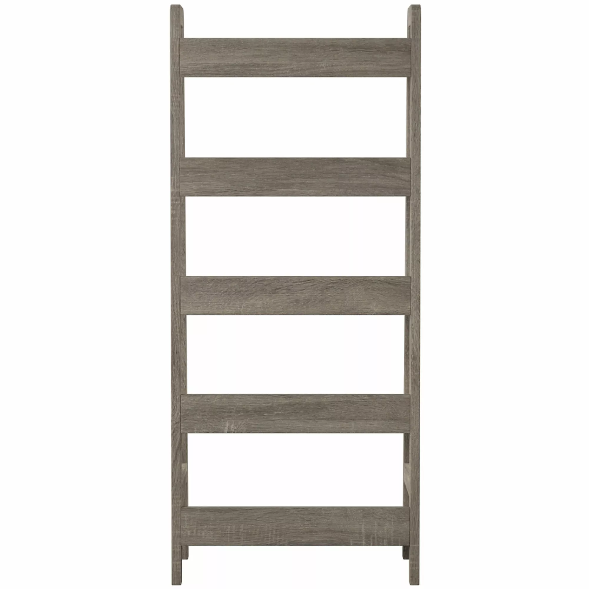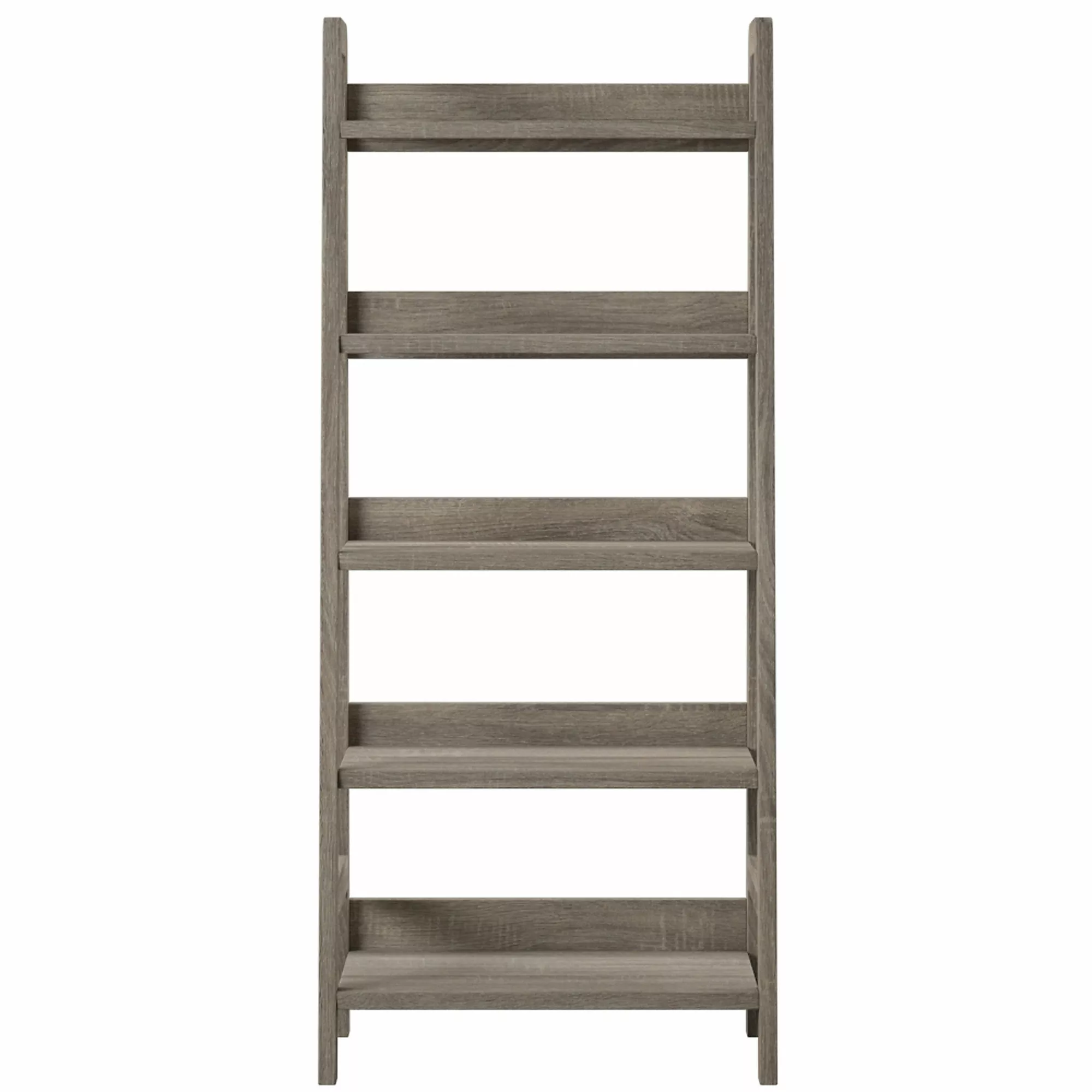 Keep your office stylish and organized with the Tawny Ladder Bookcase. Perfect for adding storage and display space to your area, The Tawny ladder bookcase is sturdy and durable. Five spacious shelves provide ample space for books, accent pieces and frames. The gray finish and transitional design makes it an easy addition to your home’s existing decor.Â