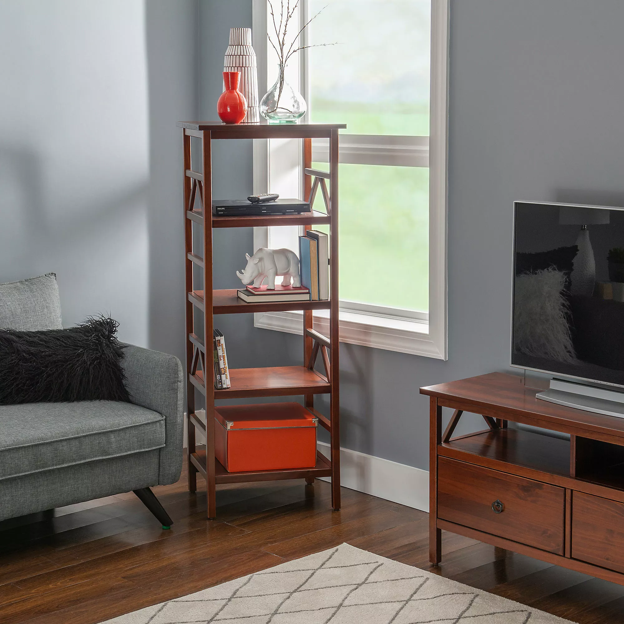 Our Torridon Collection has a simple yet eye-catching design that is matched with incredible durability. The TV Tower features four shelves that provide ample storage and display space. A neutral, classic Tobacco finish allows this piece to easily complement your homes decor.
