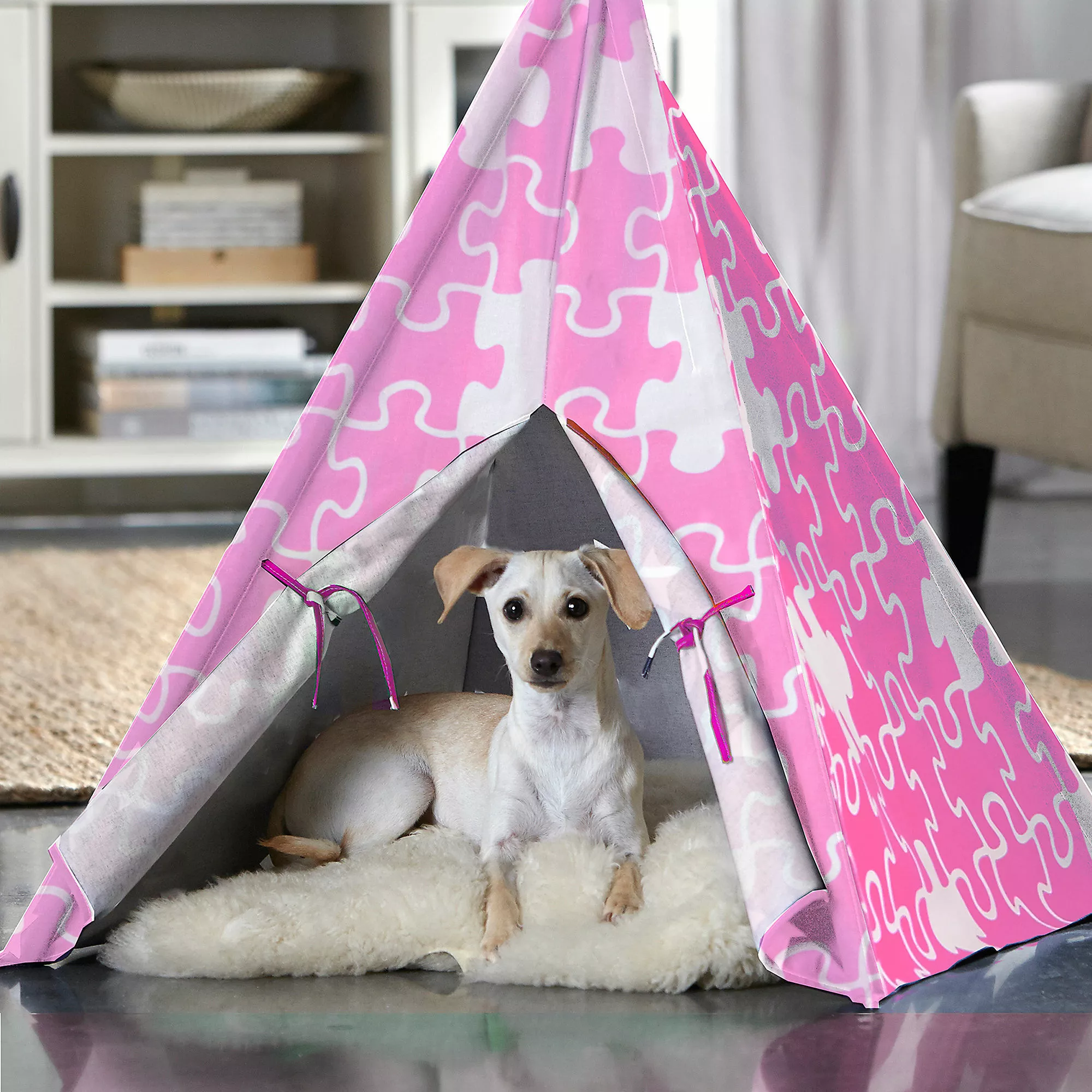 This Pet Teepee gives your furry friend their own private resting area. It is the perfect piece to hide their toys, beds and accessories when your guests come over. This fun, cute and well-crafted tent adds some jazz to your decor. The Pet Teepee is made of Canadian Hemlock, complete with a cotton canvas with a 2-flap front opening and is extremely easy to assemble!