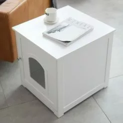 The Kitty Litter Loo serves as an attractive cover to hide away your cat’s litter box and confine any unsightly messes within the unit. In addition to this cover being highly functional, the framed panels and arched doorway make this design blend in seamlessly as just another beautiful piece of furniture in your home. The interior is designed to fit a cat pans up to 18.50″ wide x 16.00″ deep. Made entirely from MDF with a durable painted finish, this clever design will last you and your cat for a long time. Easy assembly; hardware and instructions included. Available in white or black.