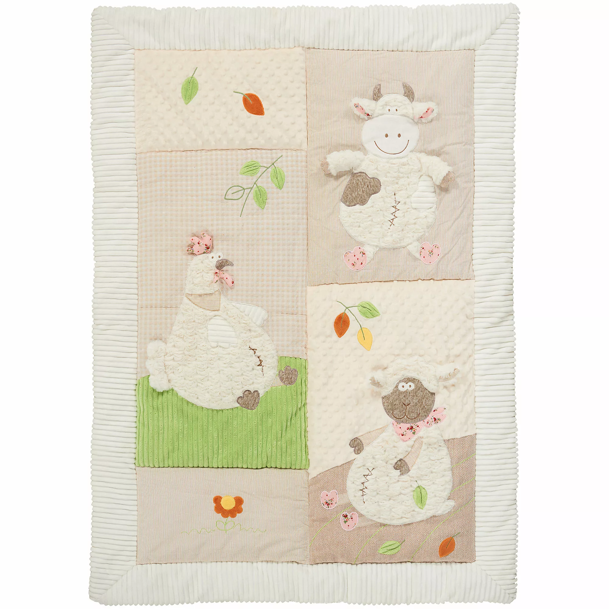 Sweet dreams are assured when your little one is tucked beneath this quilt! This Mina Victory kids’ quilt is handcrafted for quality. Its soft, plush surface is beautifully decorated with plush barnyard animals and striped edging in gentle tones. This 36”x 48” quilt is hand washable or spot cleanable.