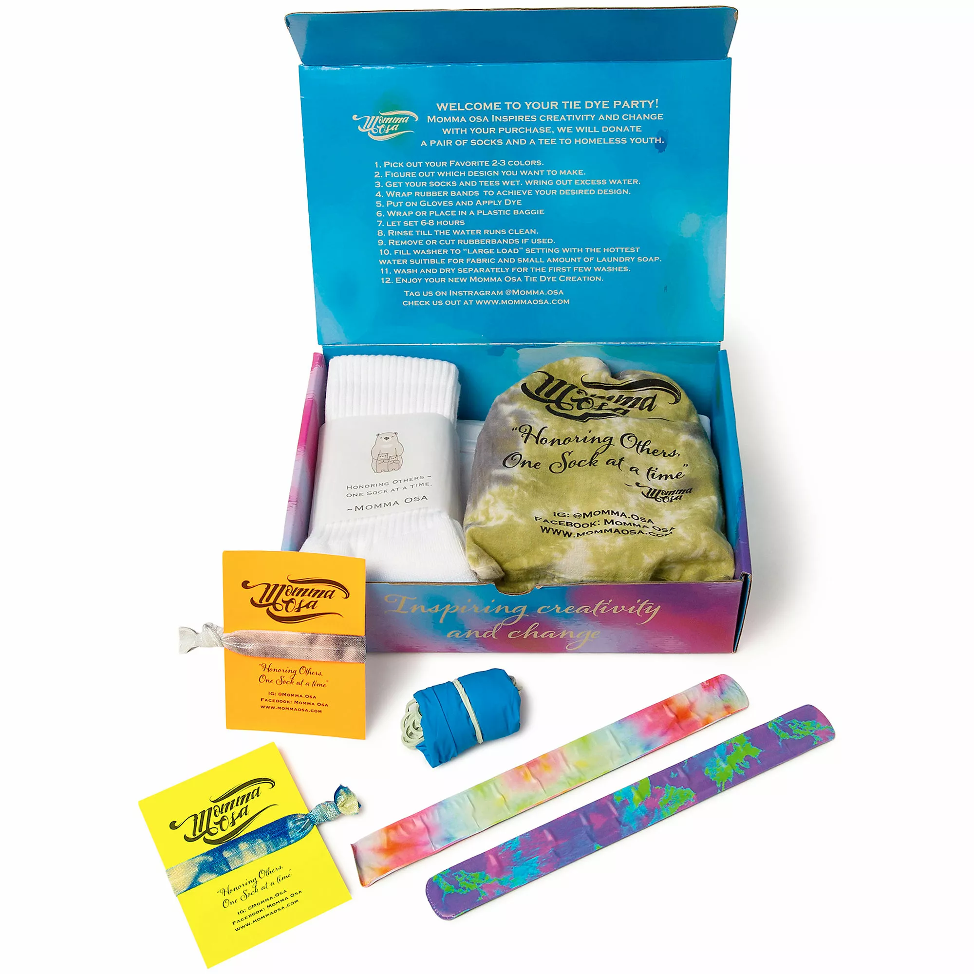 Enjoy the colorful world of tie-dye with this kit that includes everything you need to make on-trend tie-dye socks, tees and more. Get started with three colors of tie-dye: DK. Umber, Black and Olive.