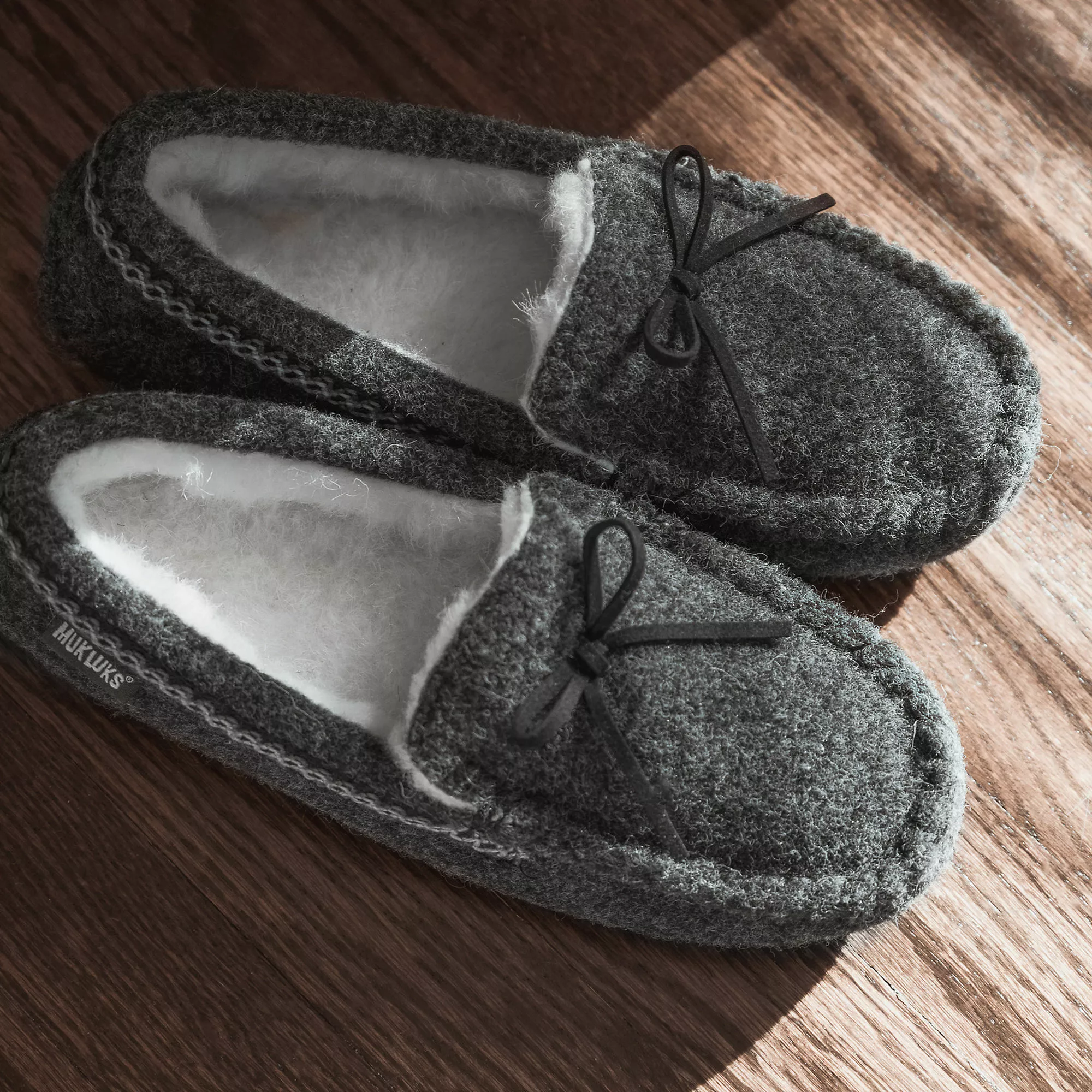 MUK LUKS® Men’s Ethan Moccasin Slippers will be your go-to slippers this year. Warm wool and faux shearling intertwine to make a cozy lining to keep toes toasty while memory foam insoles add an extra element of comfort.