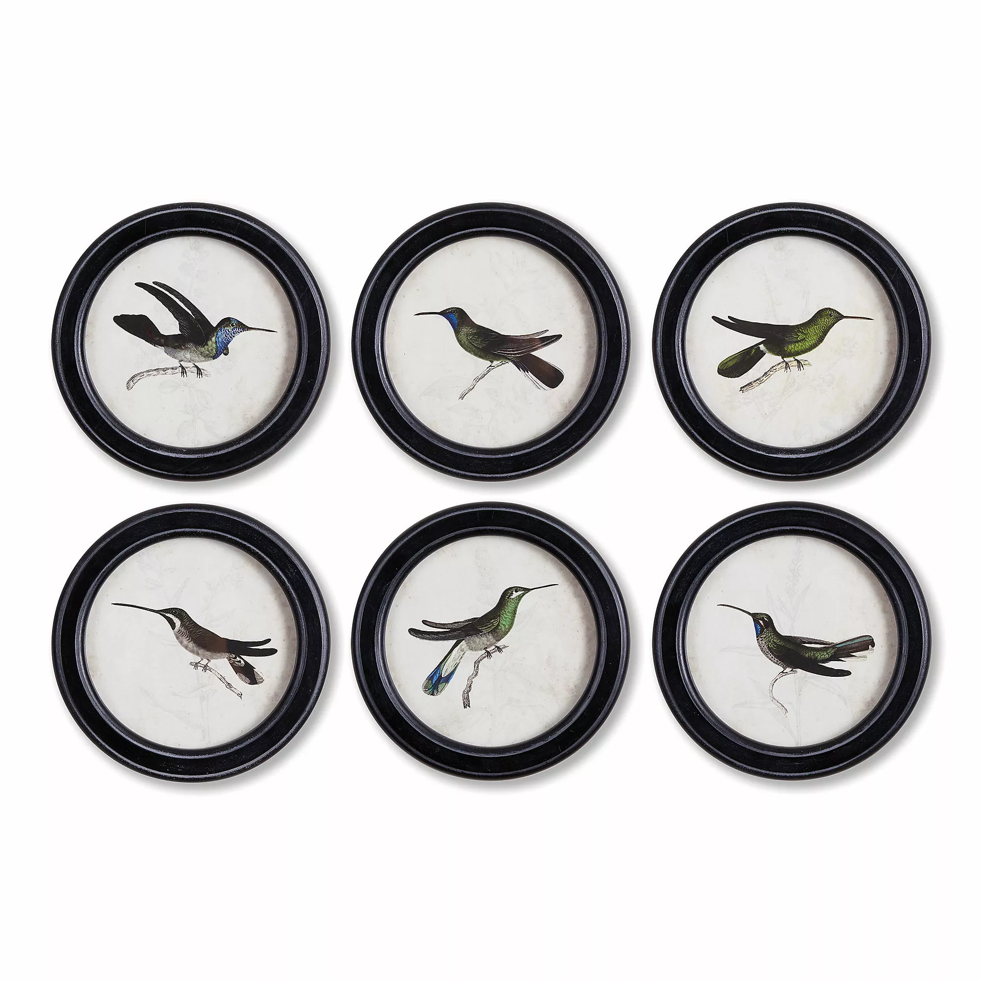 These little Hummingbird Round Framed Prints are an unexpected way to outfit your walls. Illustrated with loving detail, each one more beautiful than the next, they make a charming arrangement on the wall.