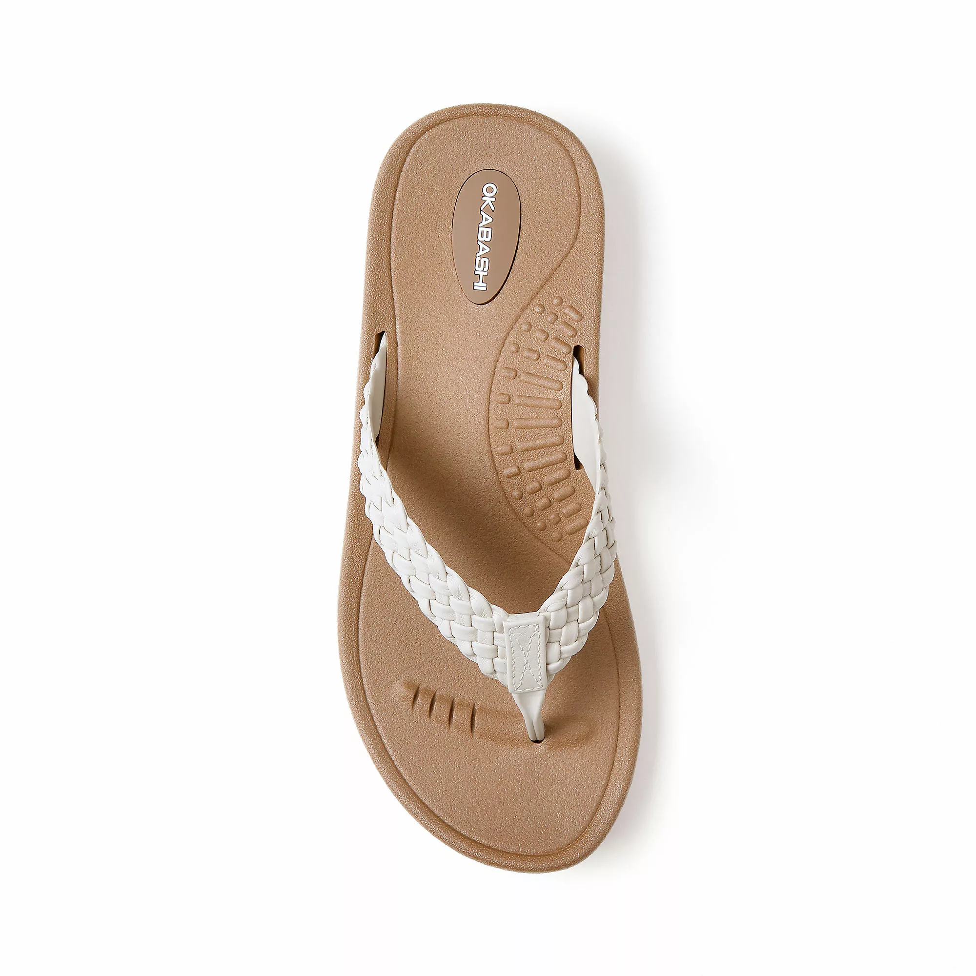 The Okabashi Baha women’s flip flop is a fresh take on our bestselling Breeze flip flop. This flip flop features the same footbed that you know and love with a contrasting strap with a twist. This low-profile style is one that you’ll want to wear every day. With a flexible upper strap that’s molded to give it a modern braid look, this chic flip flop provides your feet with all-day comfort and support. Perfect for inside and outside, Okabashi shoes are machine washable, can be put in the dishwasher, or even quickly wiped down.