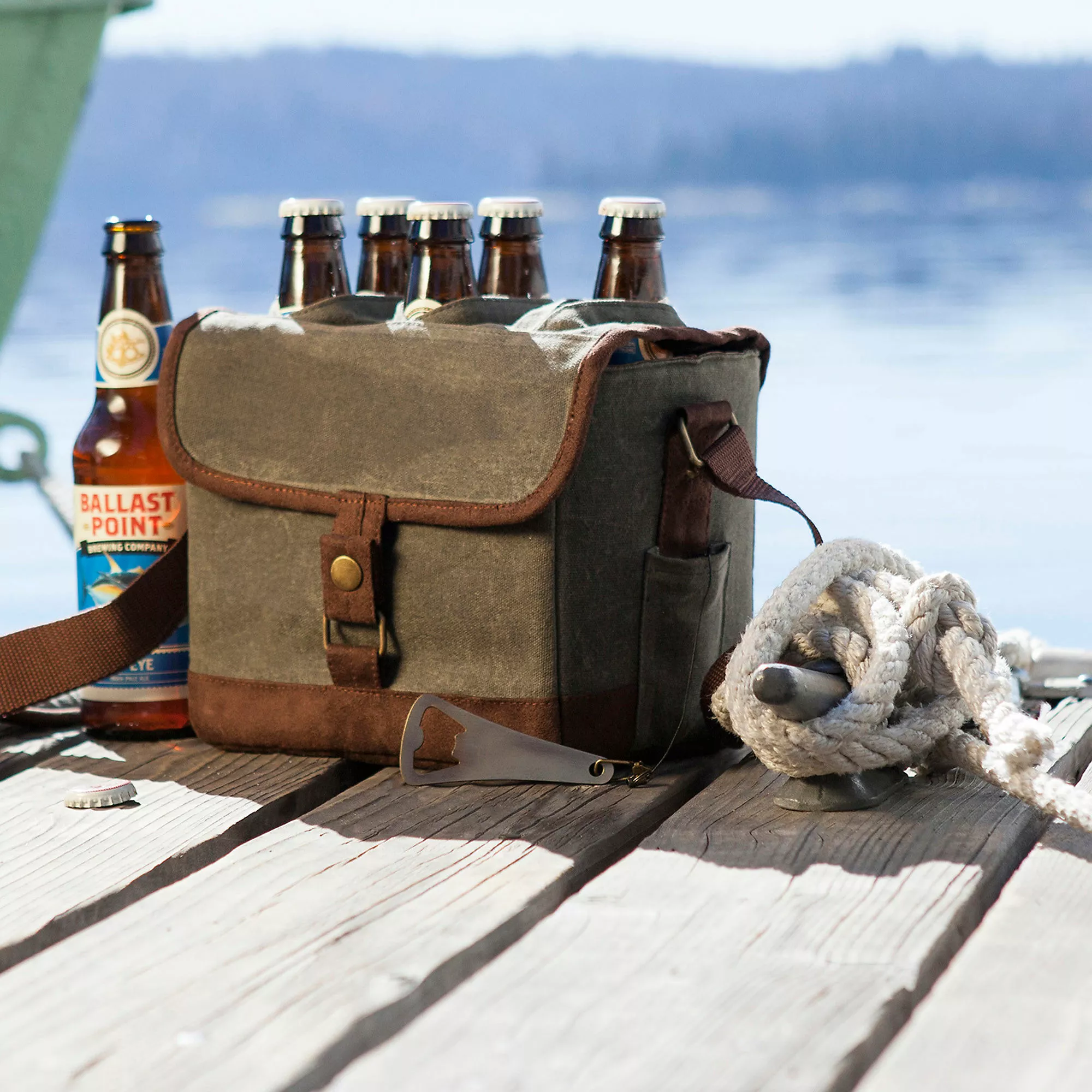 At once rustic and modern, the Beer Caddy is a distressed, waxed-canvas 6-pack cooler with a removable, padded liner. Not only does its waxed cotton canvas exterior look way cooler than a cardboard box, this beer accessory also features a bottle opener with a retractable cord with its own stow-away pocket. This beer cooler has an adjustable shoulder so you can BYOB wherever you roam, in style! Hot tip: to create a special beer gift for men that will really make him smile, fill the beer holder with a selection of your favorite craft beers. The Beer Caddy is for lovers – beer lovers, that is.