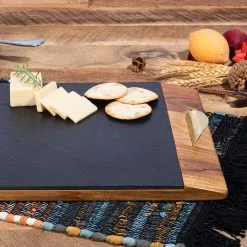 You love charcuterie, we love charcuterie, and for those people in your life that have never been blessed with it, you’ll want their first time to be on the Covina Serving Tray. The Covina has a modern look with soft rounded edges on the acacia wood tray, and a removable slate serving board. This beautiful tray has four foam feet on the bottom side so that your meats and cheeses will stay safely where you set them, and the whole thing is easily carried around by the two rounded satin brass-toned handles. If you’re going to a party, hosting one, or enjoying a Friday night mixer for one, knock up the taste and style with the Covina Serving Tray, because everything is better on slate.