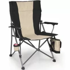 Even if you’re not a linebacker, you’ll enjoy the extra room of the Big Bear Camp Chair, a sturdy and oversized travel chair with a steel frame, hinged feet for stability on uneven terrain, durable polyester construction, and a 9-can-capacity cooler and drink holder that attach to the chair so your drinks are always within reach. This portable outdoor chair packs into a drawstring tote with a shoulder strap and features a zippered security pocket behind the headrest. Easy to get in and out of and rated for a high weight capacity, this is the perfect folding chair for big & tall folks to take camping, picnicking, and tailgating!