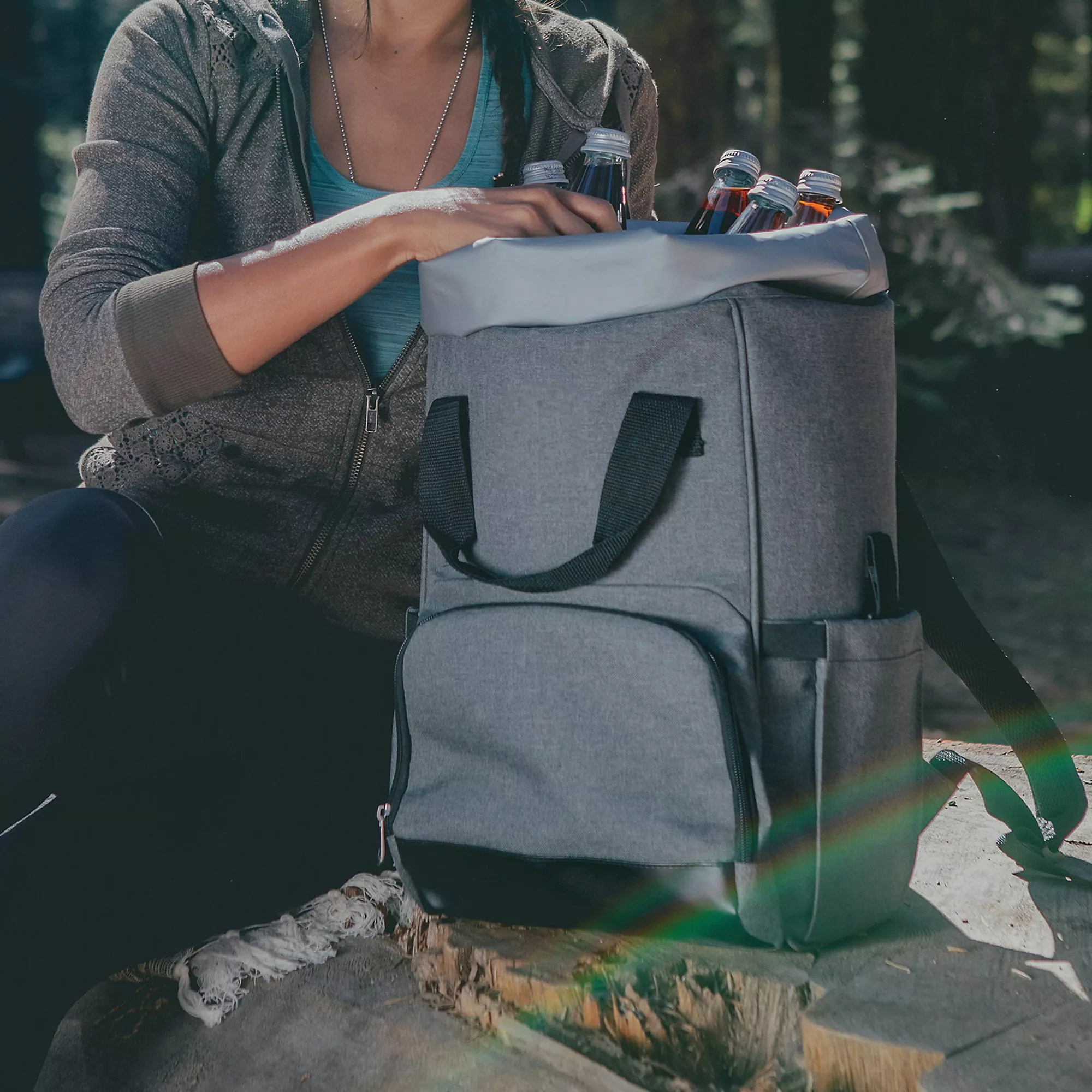 What if you could carry a chilled party over any terrain in total comfort? Now you can – with the OTG Roll-Top Cooler Backpack. With space for up to 42 cans of your favorite beverages, as well as front and side storage compartments, a bottle opener, and comfy padding, you can carry an entire picnic right on your back in this insulated cooler bag. Our backpack cooler is great for hikes, beach days, picnics at the park, watching the big game – and more. This soft cooler packs stylish good looks and a whole lot of function into one insulated camping cooler backpack.