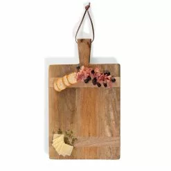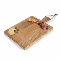 The large wooden serving tray centerpiece of your dreams has arrived with the Ravi Rectangular Serving Board in beautiful Mango Wood. You do dream of cutting boards, right? Well, we certainly do! This multi-purpose cutting board is a generous 18 by 11 by 1 inches, making this platter ideal for wine and cheese parties of all kinds. The contrasting timber stripes on one side give a stylish, rustic flair. It’s so lovely, you’ll want to display it between uses – which is easy to do because of the leather rope on the handle for hanging. Load up the charcuterie, bread, and cheese – this tray is ready to square up against the competition, indoors or out. Hope you’re ready for tons of compliments on this rectangular wooden platter because they are coming in hot!