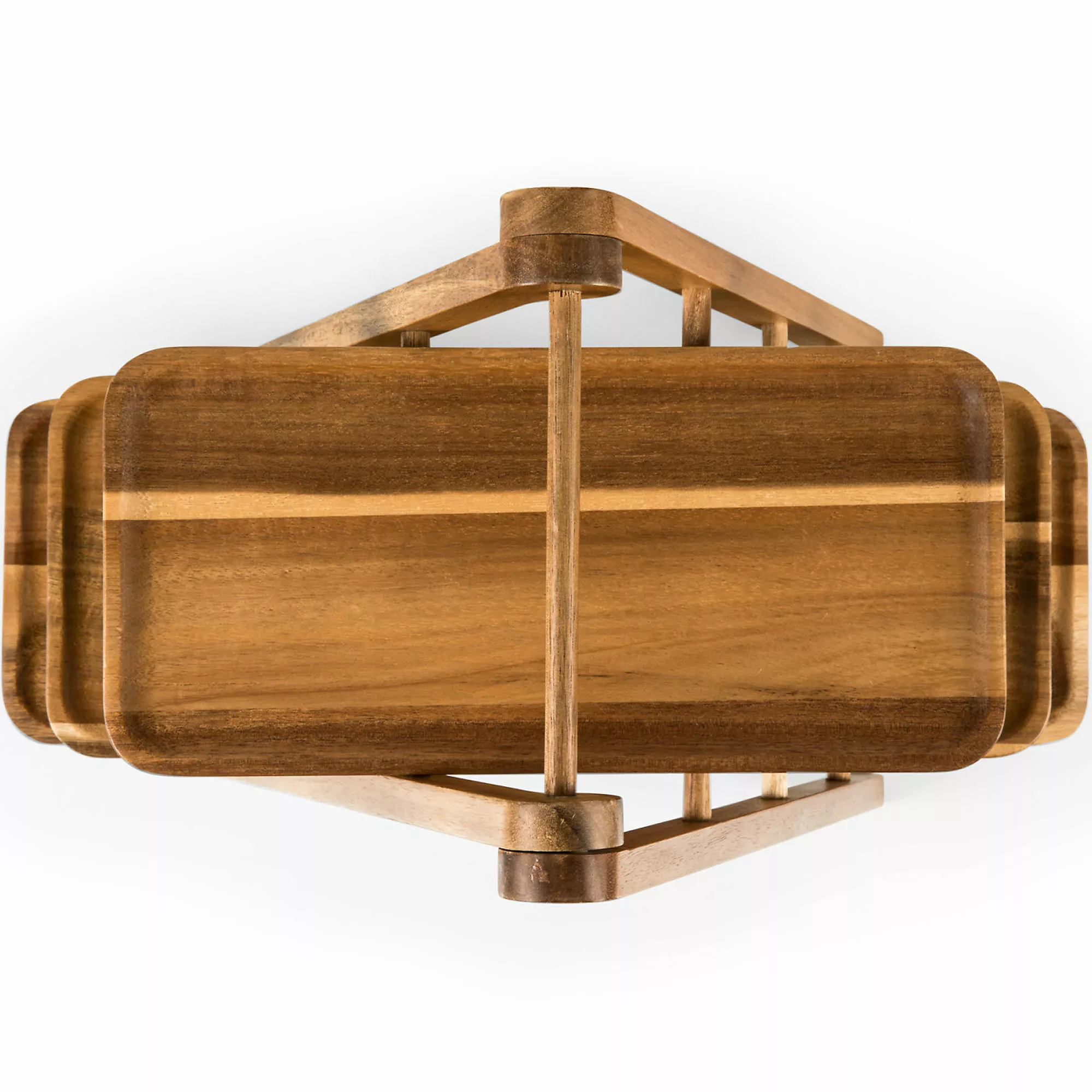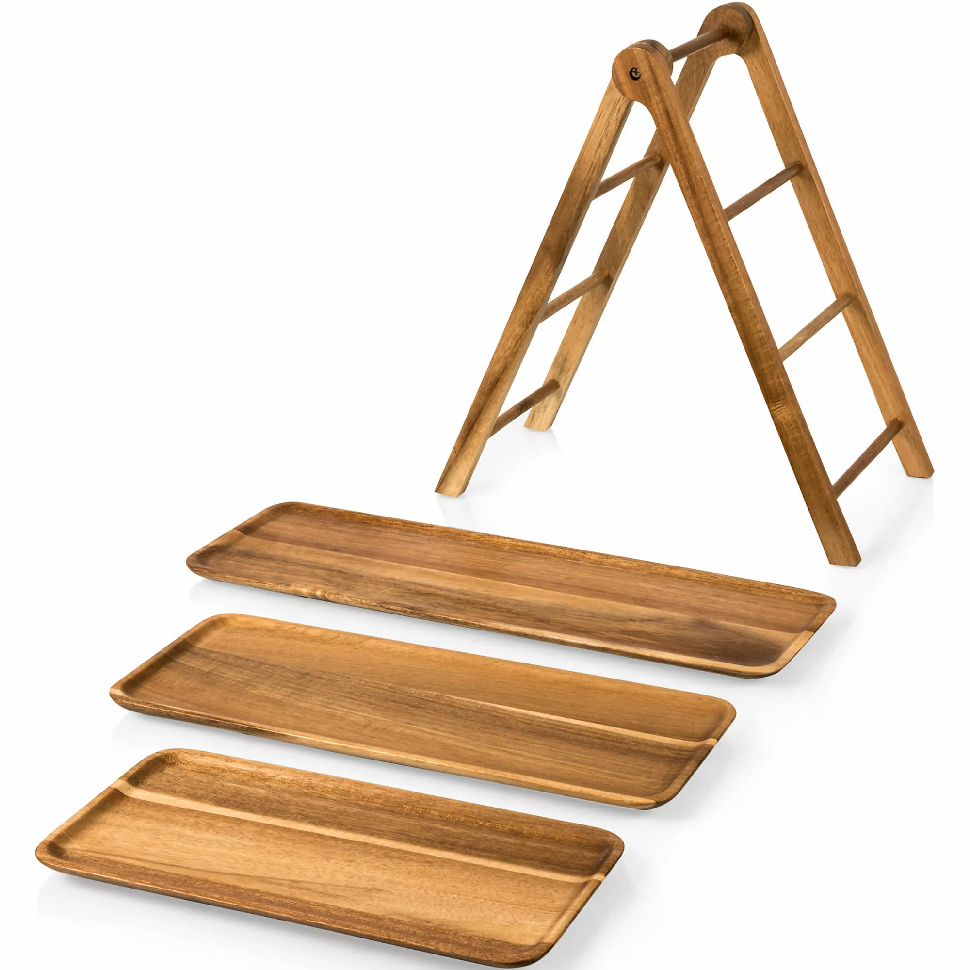 At once space-saving and stylish, the Serving Ladder is a 3-tiered serving station with small, medium, and large removable trays set on a collapsible ladder. Made of Natural Acacia, this serving set is the perfect centerpiece for picnics and wine & cheese tastings! The classy layout will especially wow the guests at your next dinner party or family get together.