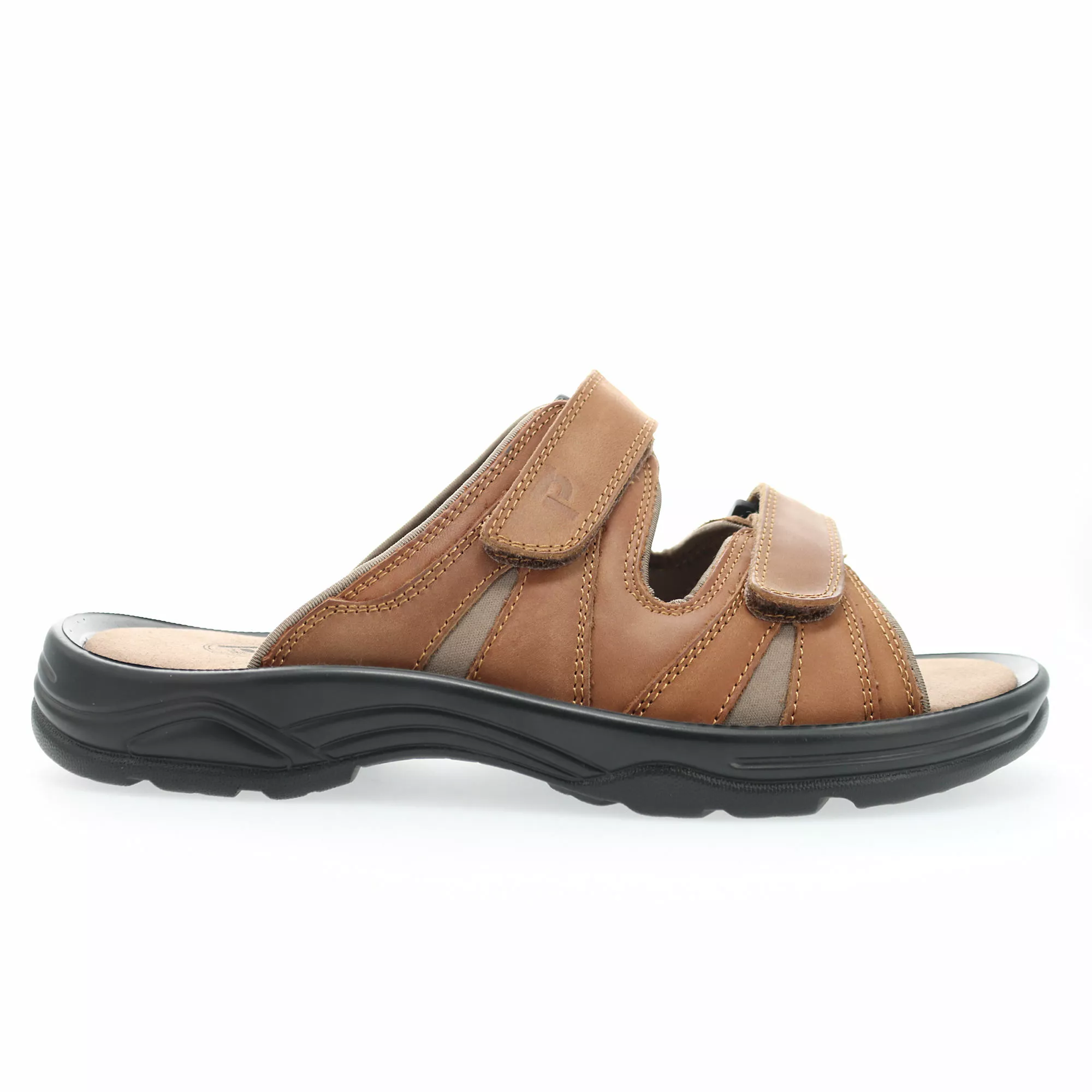 Waxy Nubuck slide sandal with neoprene lining. EVA footbed with microfiber lining. Long lasting PU outsole.Â