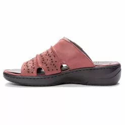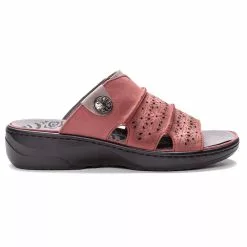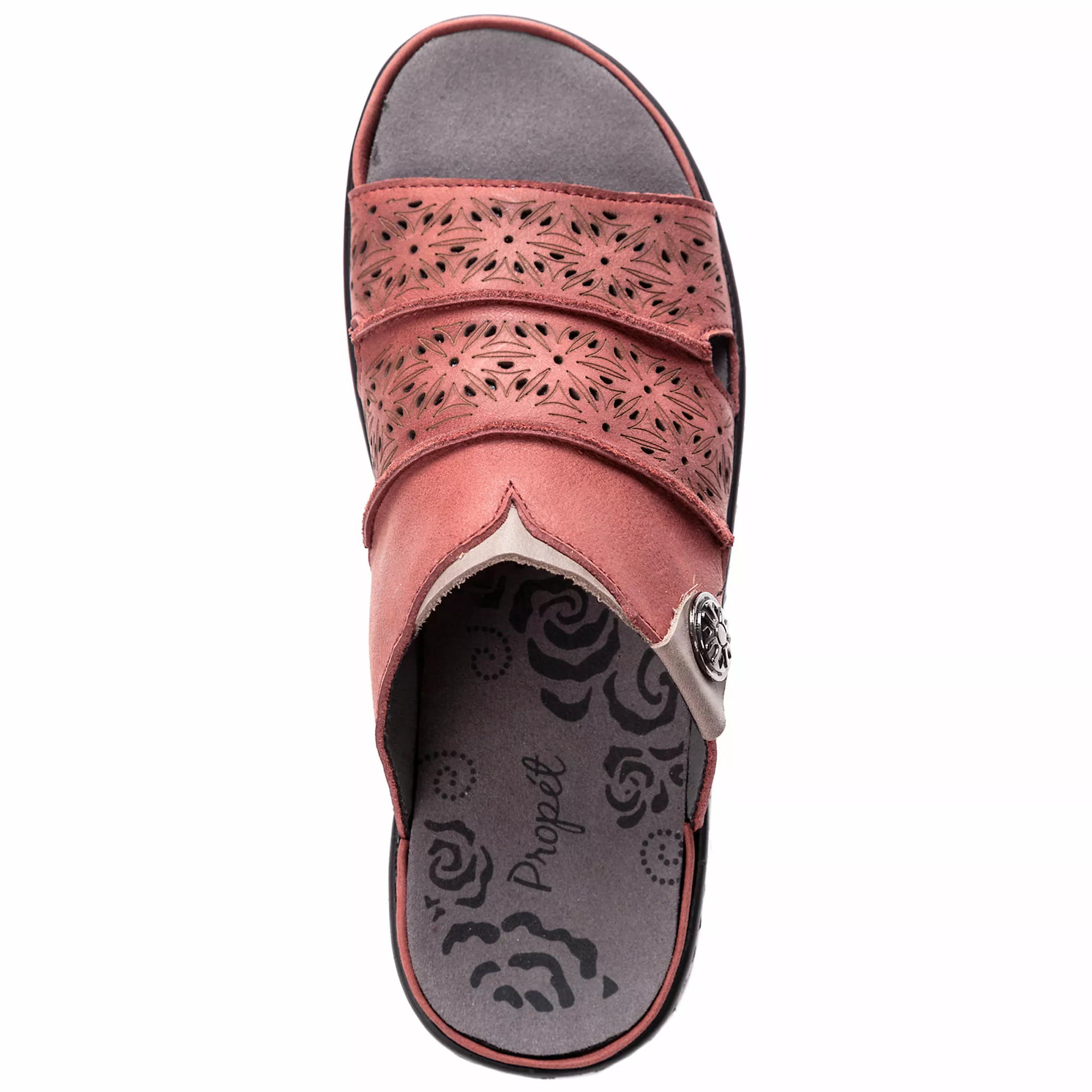 Slide sandal with laser cut detailing and medallion embellishment. Extra-cushioned, removable PU insole with microfiber sock lining. Lightweight cushioning PU with rubber inserts for traction.