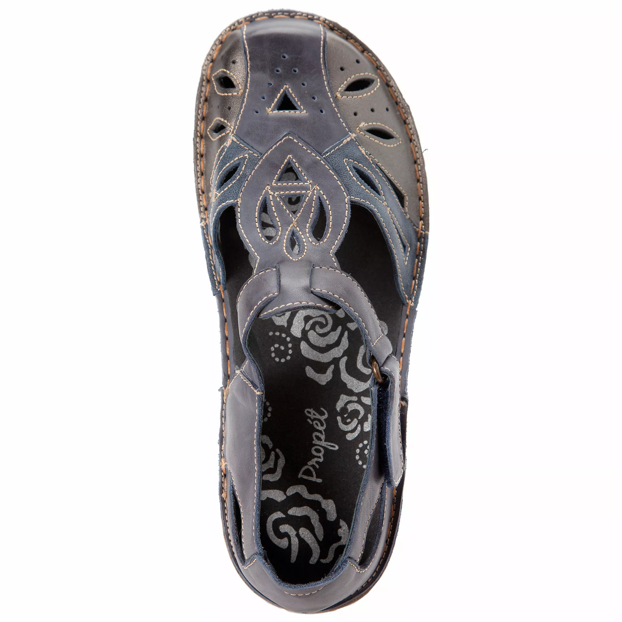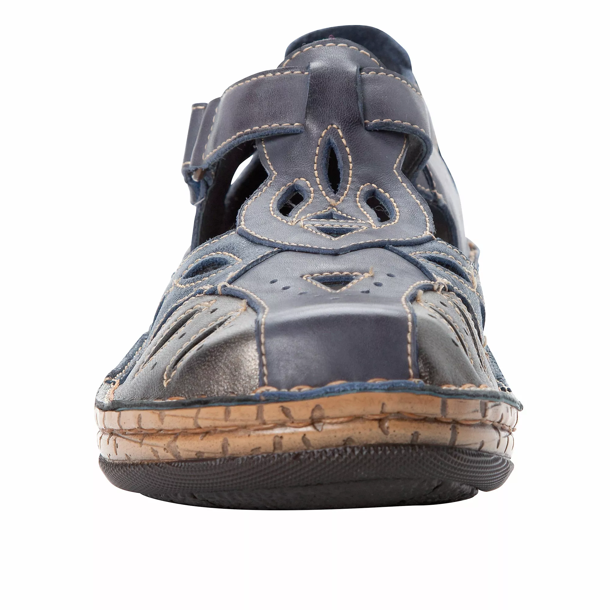 Closed toe and closed heel leather upper with cutouts for a stylish full coverage sandal. Extra-cushioned, removable PU insole with microfiber sock lining. Lightweight PU with rubber inserts for traction.