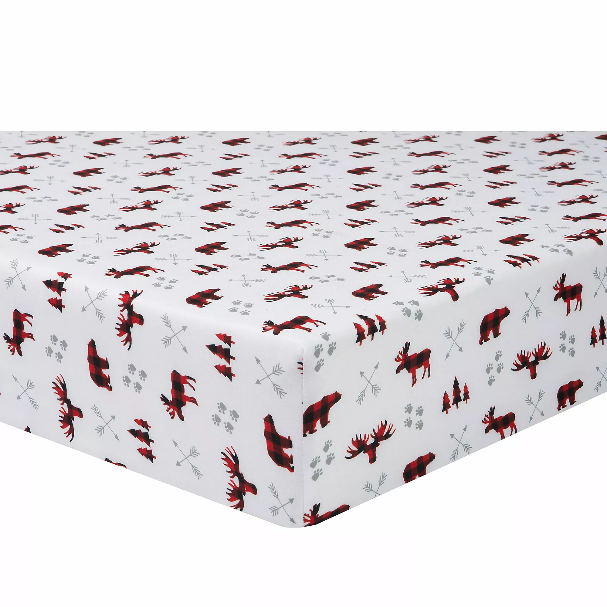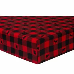 TIMBER! Lay your little one down on the Lumberjack 2-Pack Microfiber Fitted Crib Sheet Set by Sammy & Lou®. This set of 2 wonderful soft crib sheets includes a print featuring red and black buffalo check plaid with moose, bears, pine trees, gray arrows and paw prints, with a second print of red and black lumberjack plaid. Coordinating Sammy and Lou crib bedding and accessories sold separately.