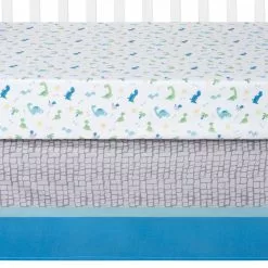 Create an adventurous nursery for your little one with the Dinosaur Pals collection by Sammy & Lou®. Dinosaur moms and babies are featured with a dinosaur scale print border in a color palette of grays, aqua, light green and blue with pops of light yellow.Â