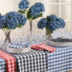Bring a French garden vibe directly to your table with this gorgeous Gingham Design Tablecloth. Although ideal for casual dining, this stylish cotton tablecloth can be easily dressed up for a special occasion with antique countryside inspired dinnerware and centerpieces. Add fresh flowers to the table for a natural, pure effect.