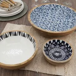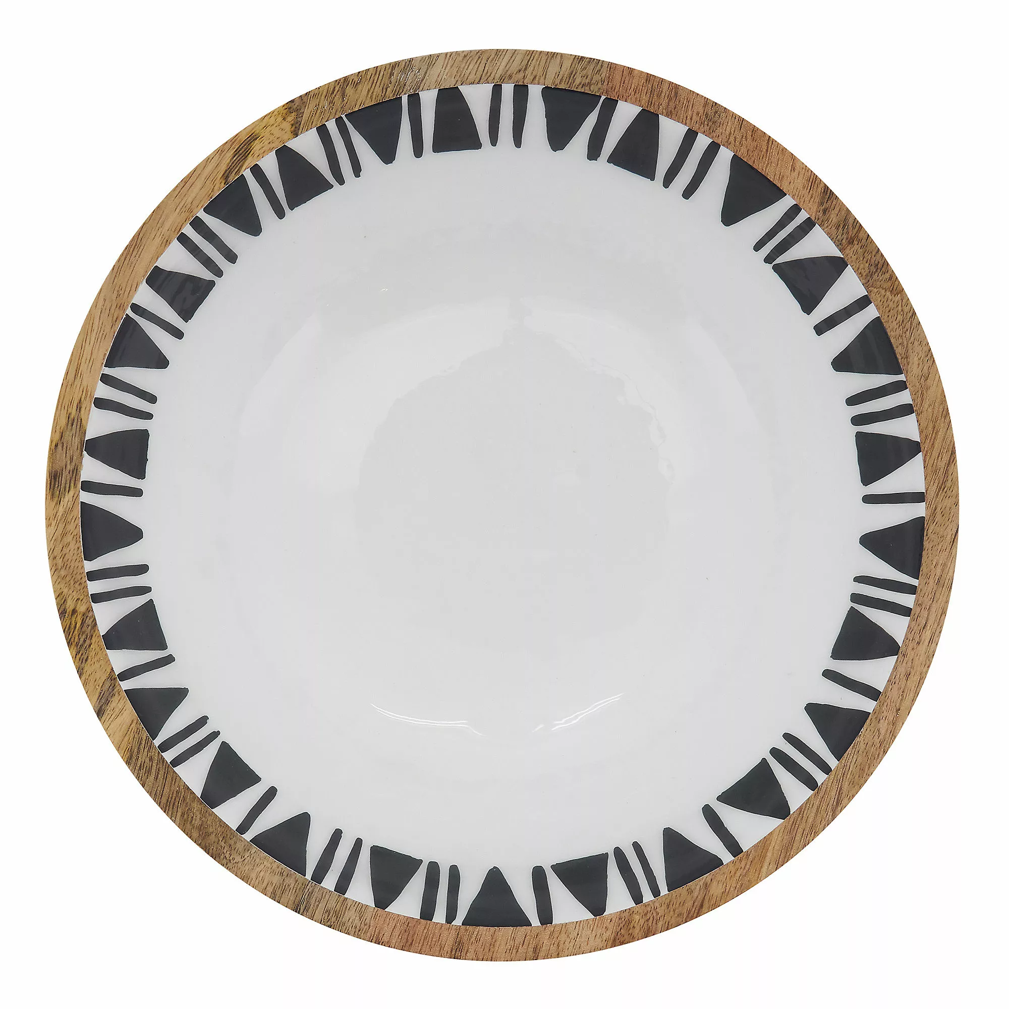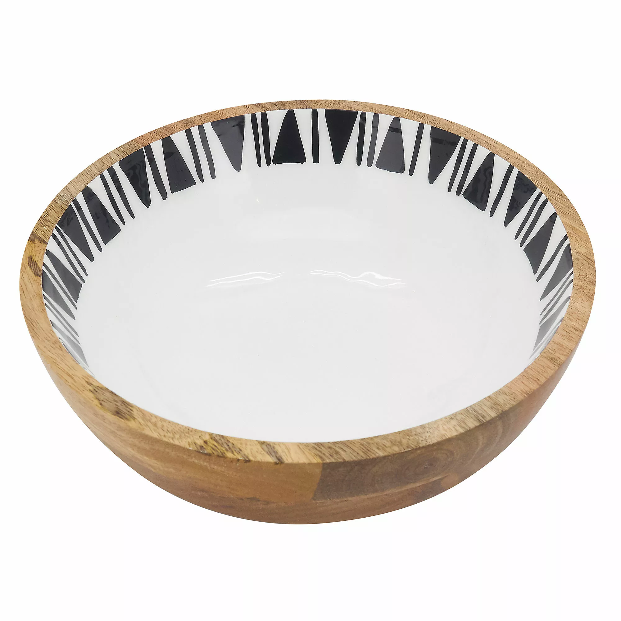 A splendid combination of organic and refined, this Arrow Trim Enamel Wood Serving Bowl is great for parties, as well as daily use. Use it for fruit or snacks, as well as salads or sides for everyday meals. The beautiful design also creates a gorgeous display bowl.