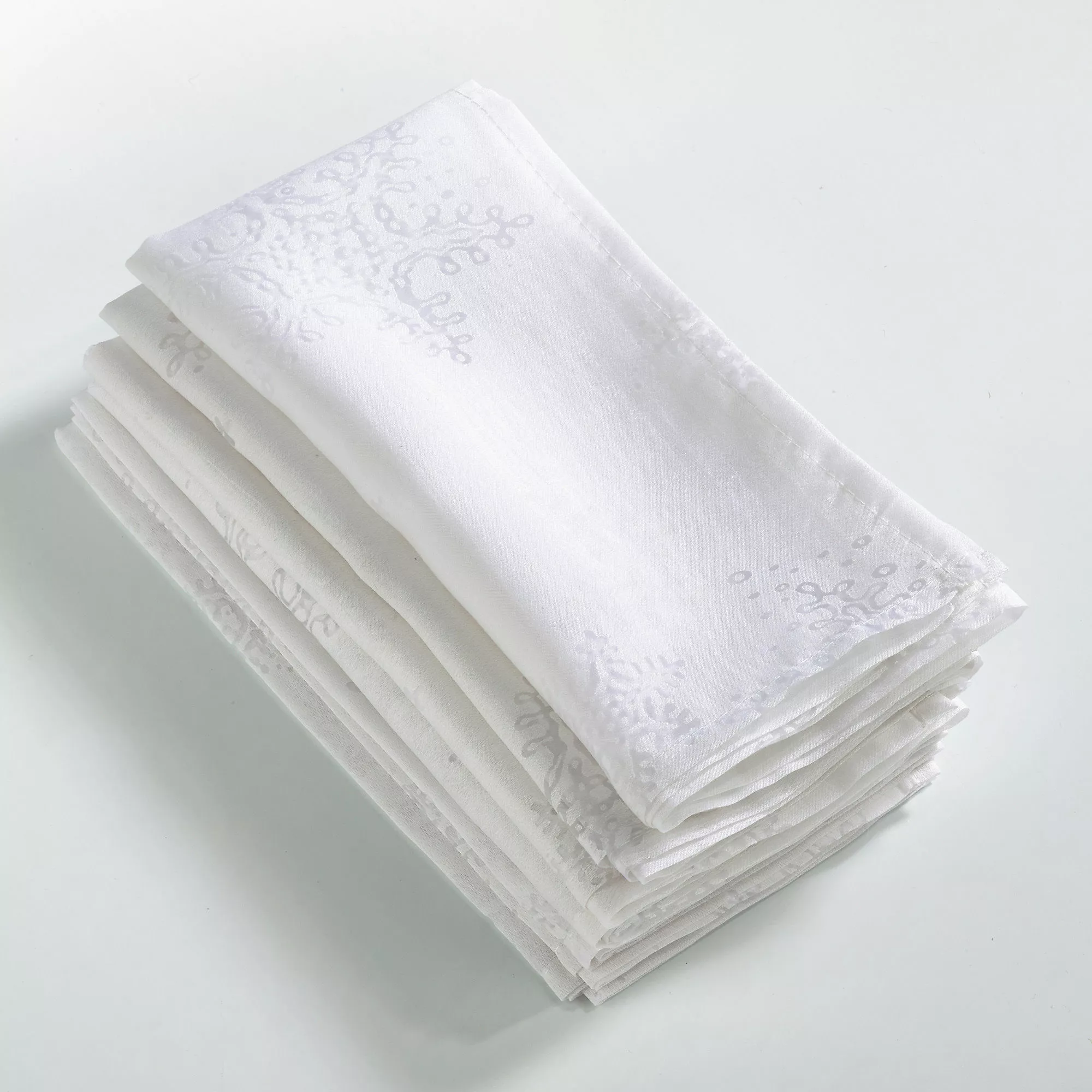 This gorgeous set of dinner napkins feature a burnout snowflake design and makes the perfect accessory for your winter dining table. With a delicate pattern and light tones, these napkins will add grace and style to your tabletop décor.