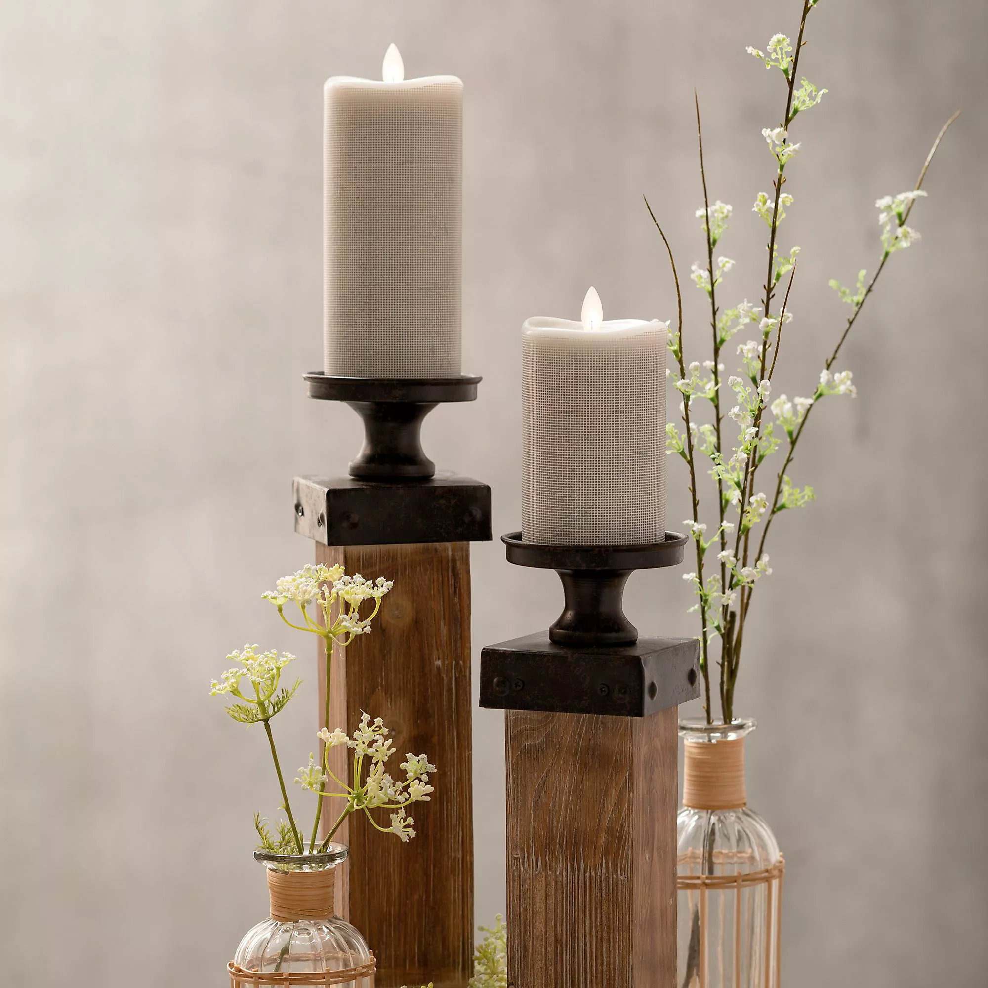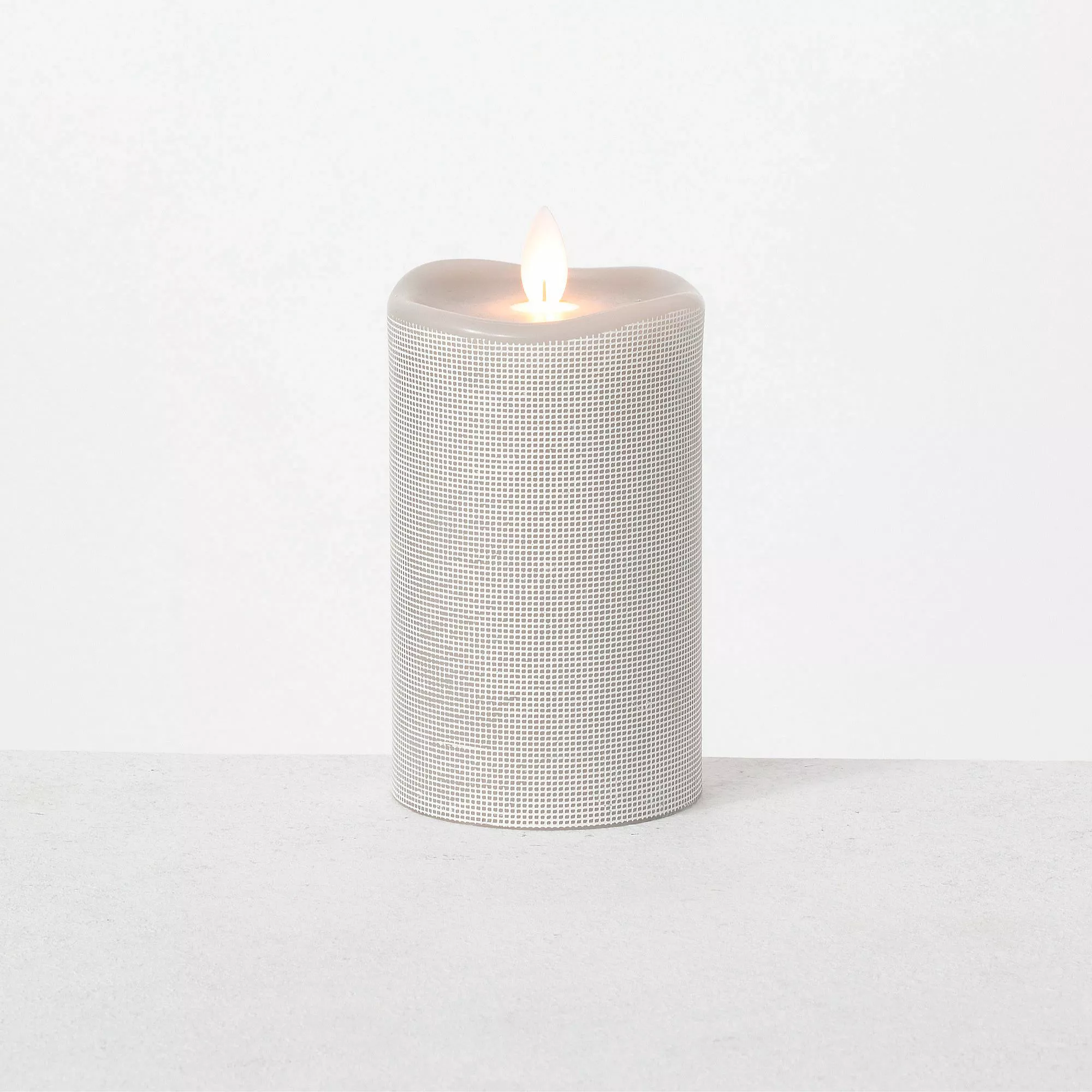Create a welcoming candlelight display with our flickering flameless candle, featuring a frosted and textured wax candle body. The flickering light mimics a candles authentic glow.