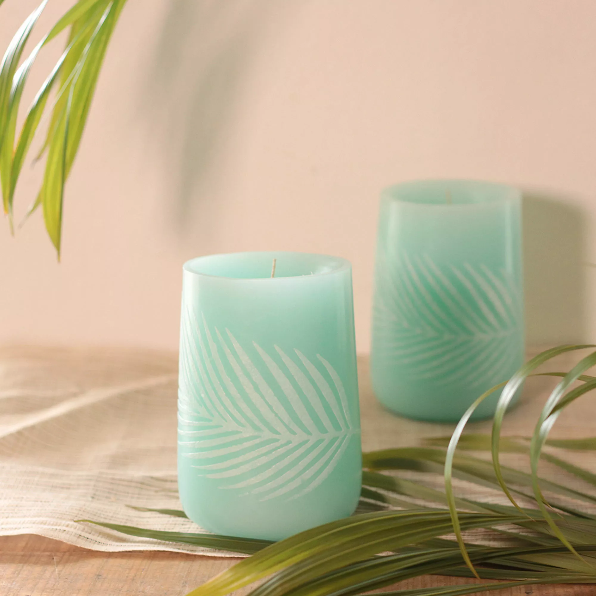 This pillar candle is perfect for the nature lover in your life! This beautiful pillar features a leaf imprint, and will fit right in with your everyday or botanical-inspired décor.