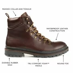 A boot that takes you places, the Grant by Thomas & Vine. This round-toe boot is crafted with waterproof authentic leather resting on an 6 mm Tru Comfort Foamâ„¢ footbed and traction sole for extra support. A cushioned collar covered and colored laces with heavy-duty metal eyelets finish the look.