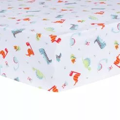 Your little one’s imagination will roar with the Dinosaur Roar Crib Bedding Set by Trend Lab. Friendly pre-historic dinosaurs alongside trees, volcanoes and adorable prints mix with a variety of different textures to take your little one on an exciting adventure. Scallop stripes, bones and dinosaur foot prints are showcased in the fun color palette including orange, mandarin red, mint, dusty blue, light green, green, silver and glacier gray. Coordinating Dinosaur Roar accessories are sold separately. Please adhere to JPMA’s Safe Infant Bedding Practices.