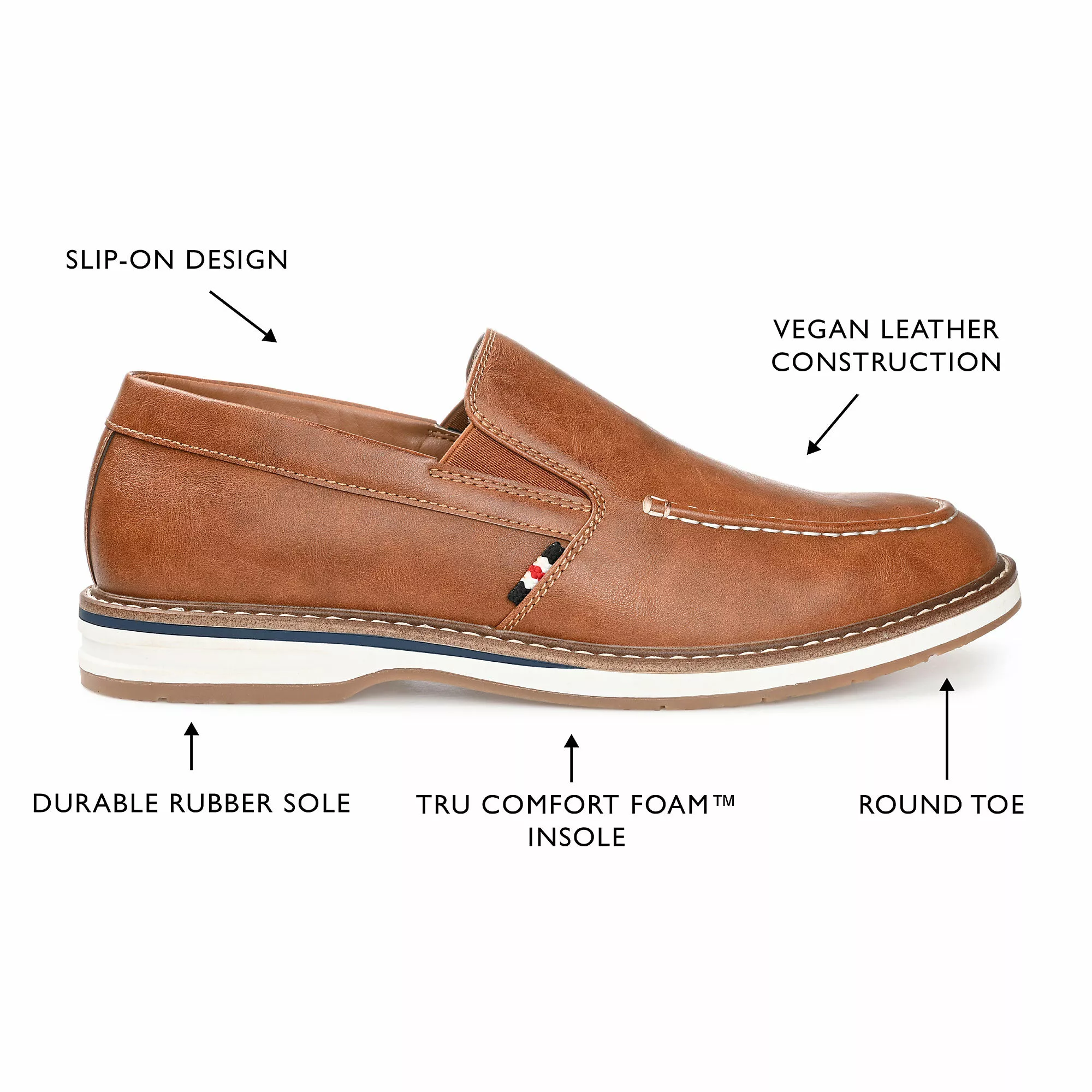 Loafers you can pair with both jeans and slacks. The Harrison by Vance Co. is a slip-on loafer crafted with vegan leather uppers detailed with a moc toe and stretch gore for a modern spin. With a rubber sole and 6 mm Tru Comfort Foamâ„¢ footbed, this style is made to support all day.